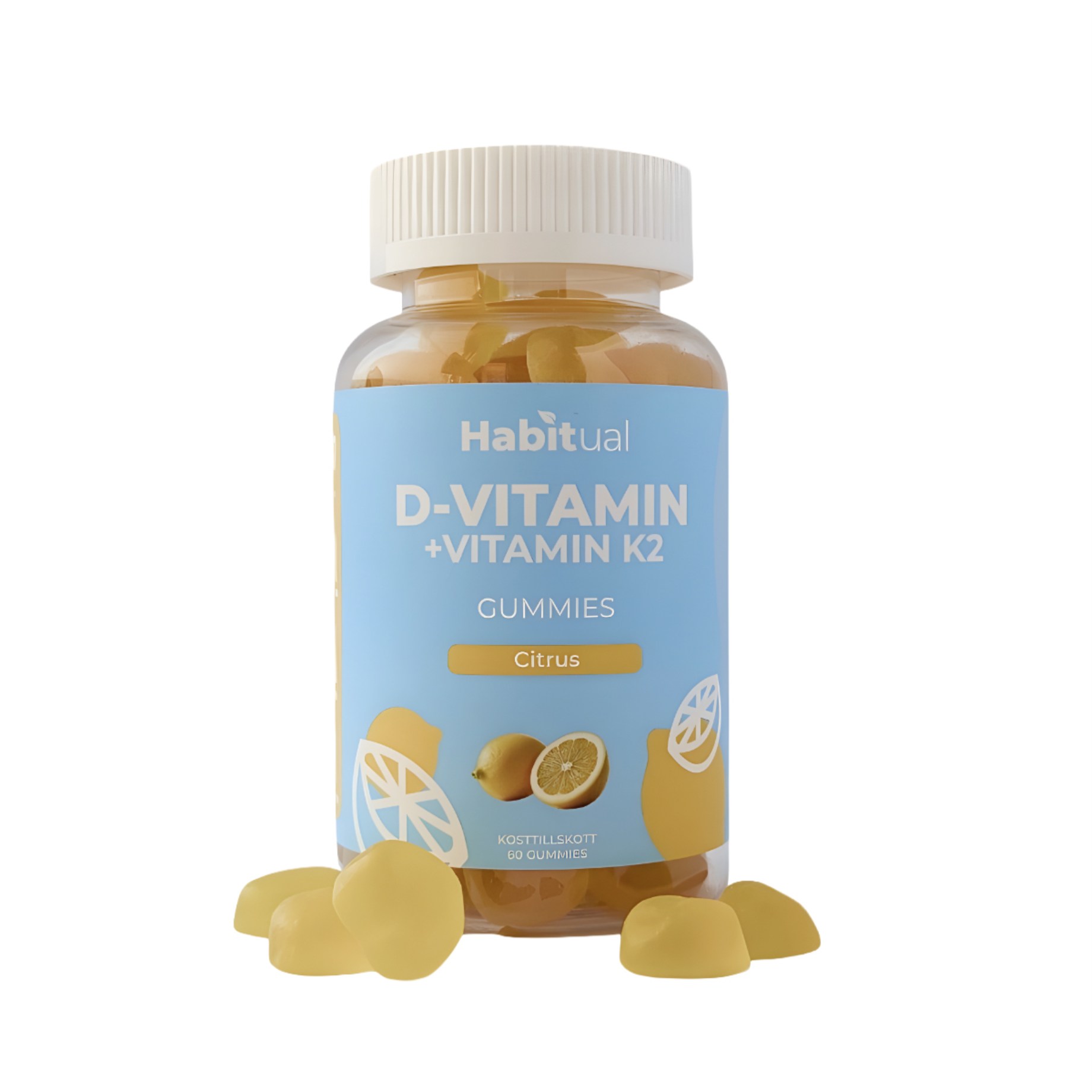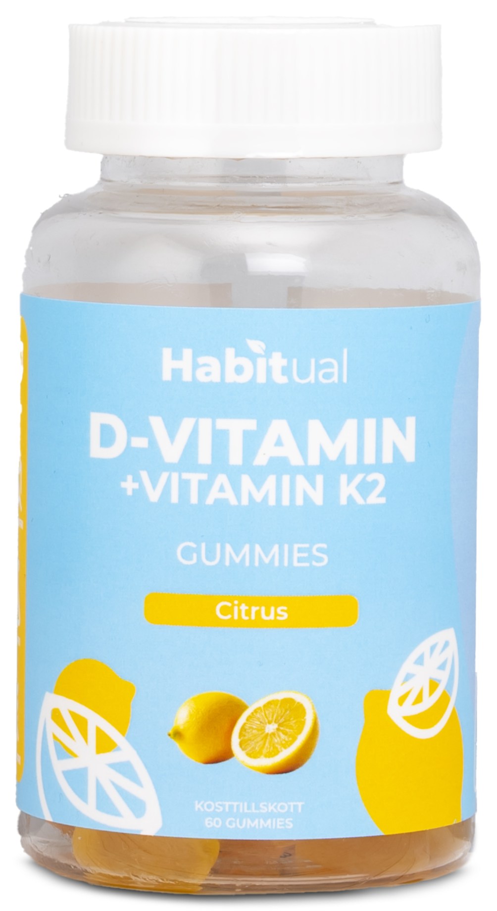Habitual D-vitamin Gummies gör det både enkelt och gott att få i sig vitaminer. D-vitamin rekommenderas särskilt under vinterhalvåret och kombineras här med vitamin K2 som är inblandat i blodkoagulationen. Tillsammans med D-vitamin och kalcium samverkar vitamin K2 för att främja en normal benhälsa. Habitual D-vitamin Gummies är goda gummies med smak av citrus som lätt blir en del av din dagliga rutin.