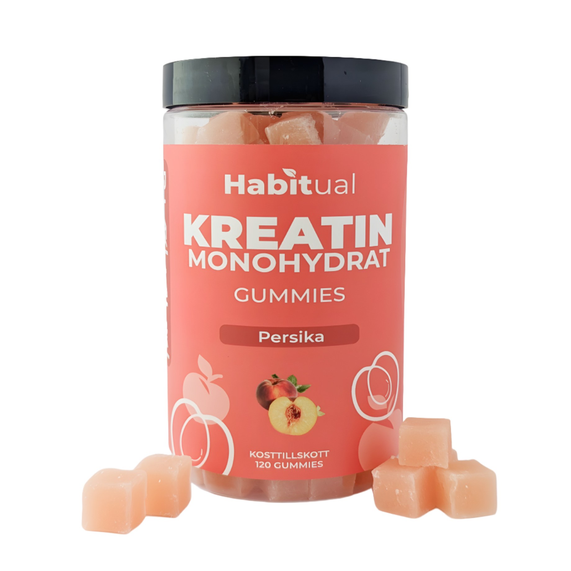 Habitual Kreatin Gummies är gummies med kreatinmonohydrat, i fruktiga smaker. Varje gummy innehåller 1,5 g kreatin, och en portion på tre gummies ger totalt 4,5 g – en full evidensbaserad dagsdos. Kreatinet används av kroppen för att producera energi som muskler och hjärna kan använda under fysisk aktivitet. Veganska, gluten- och sockerfria gummies utan sandig eftersmak – ett enkelt och njutbart sätt att få i sig kreatin varje dag.