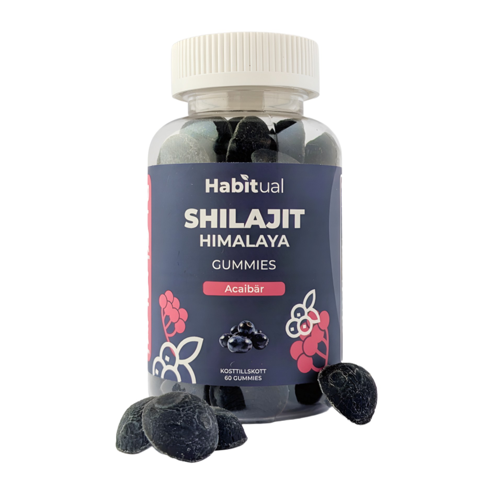 Habitual Shilajit Gummies är mjuka gummies med shilajit i bärig acaismak. Varje gummy innehåller 150 mg shilajit resin från Himalaya med naturliga mineraler. Gluten- och gelatinfria, med över 70 spårmineraler som magnesium, zink och järn. Två gummies per dag ger 300 mg shilajit.
