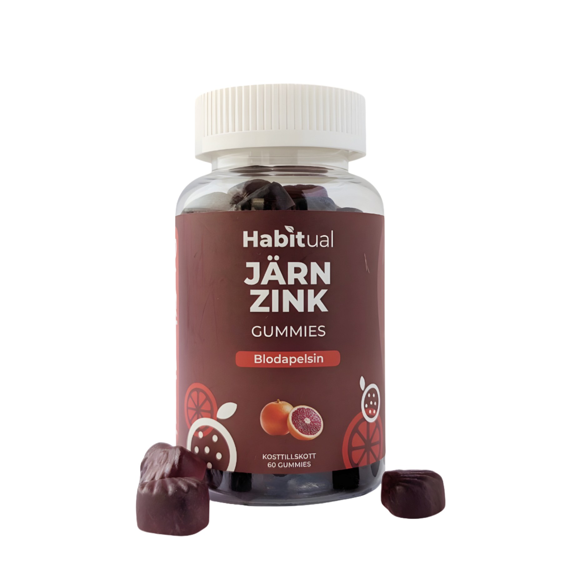 Habitual Zink + Järn Gummies är ett gott och lätt sätt att få i sig mineraler. Varje gummy innehåller 20 mg järn och 16 mg zink. Järn bidrar till normal bildning av röda blodkroppar, normal syretransport och minskad trötthet och utmattning, medan zink skyddar cellerna mot oxidativ stress och bidrar till ett normalt immunsystem. Det stödjer även hår, hur och naglar. Få i dig dina vitaminer på ett enkelt sätt med goda gummies med smak av blodapelsin.