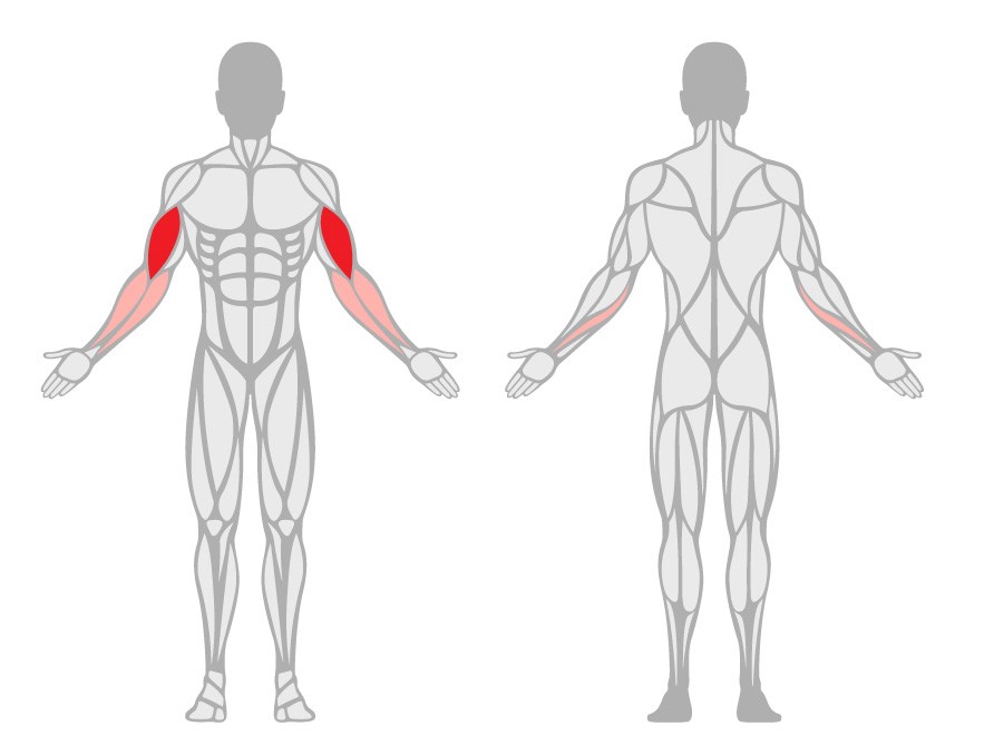 Hantelcurl aktiverar muskeln på överarmens framsida.