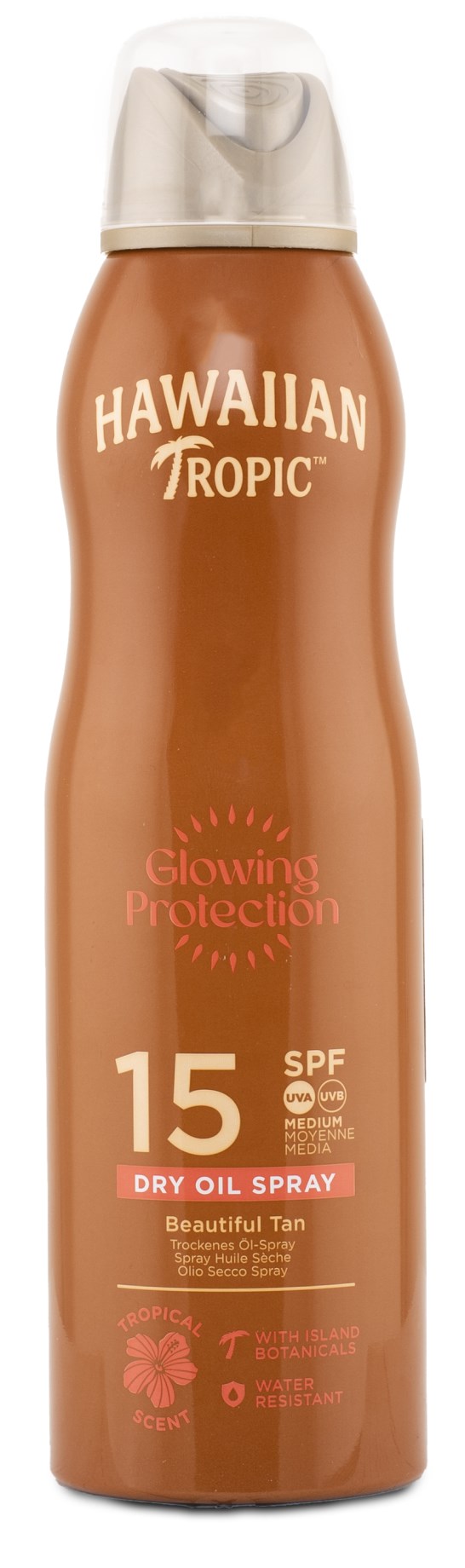 Hawaiian Tropic Dry Oil Argan Continuous Spray SPF 15 är en vårdande torr sololja med arganolja. Hawaiian Tropic sololja med argan är en så kallad torr olja och innebär att den absorberas snabbt in i huden utan att lämna efter sig en oljig hinna på huden, och med dess praktiska aerosol-flaska kommer det bli lekande lätt att applicera oljan på huden. Hawaiian Tropic Dry Oil Argan Continuous Spray finns även med lägre solskydd för den som önskar och är väldigt vattenresistent.
