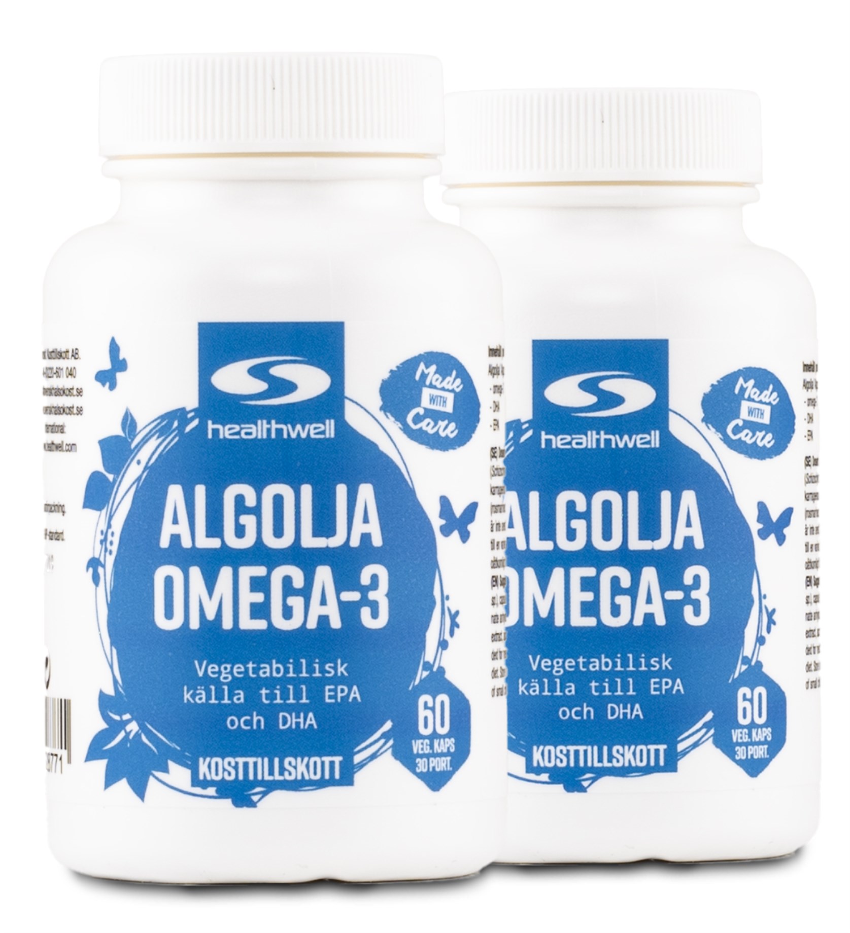 Algolja Omega-3 från Healthwell är ett vegetabiliskt omega-3-tillskott från mikroalger. Algoljan är naturligt rik på omega-3-fettsyrorna DHA och EPA, som stödjer flera viktiga funktioner i vår kropp. Fettsyran DHA bidrar till en normal synförmåga och en normal hjärnfunktion, och både DHA och EPA stöttar en normal hjärtfunktion. Algen odlas dessutom i en välkontrollerad miljö och är fri från föroreningar och gifter. Om du söker en kvalitativ och vegansk källa till omega-3 är Healthwell Algolja Omega-3 perfekt för dig!