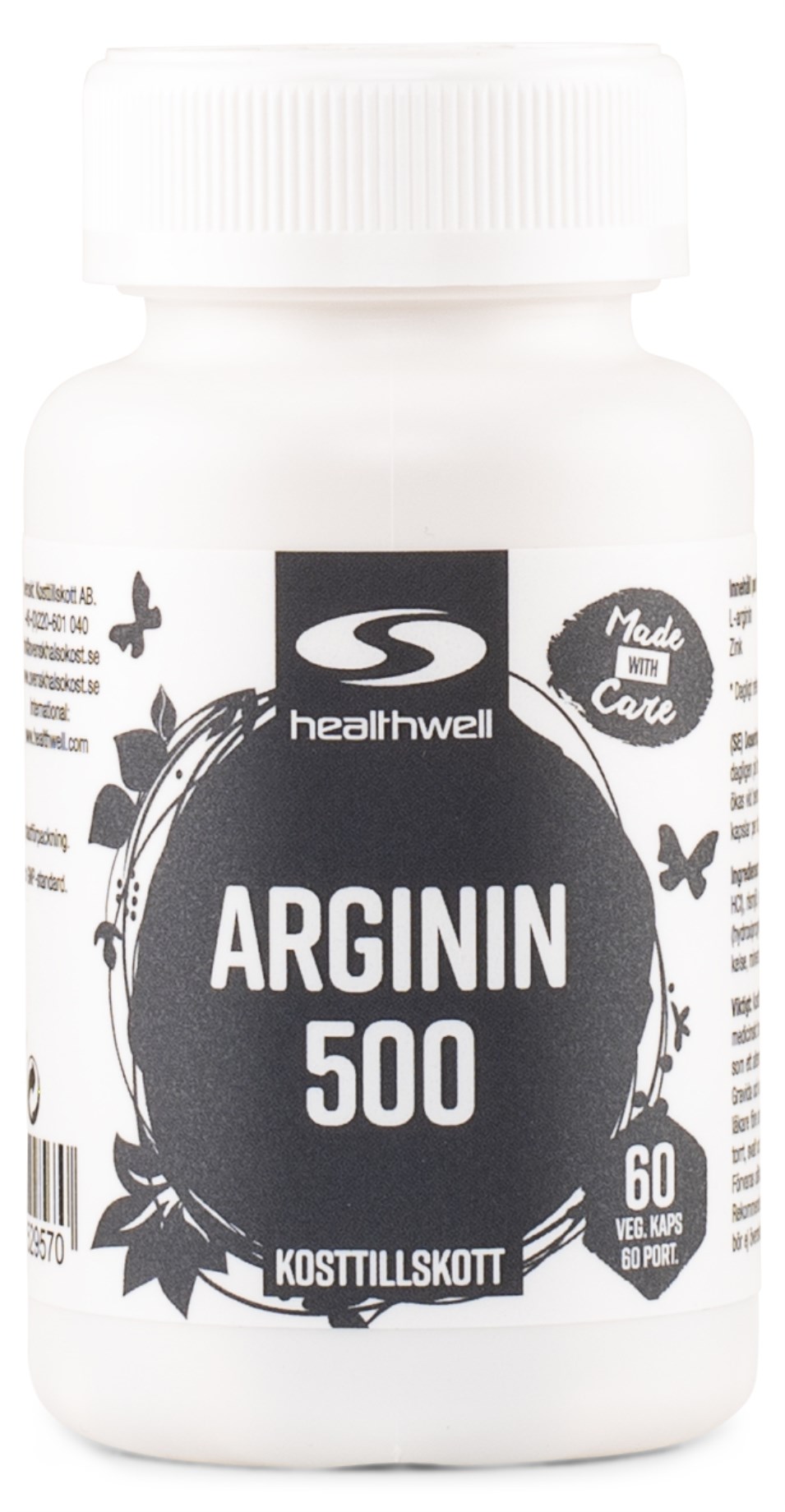 Healthwell Arginin 500 är ett kosttillskott med 500 mg L-arginin samt tillsatt zink i lättsvalda kapslar. L-arginin är en viktig aminosyra som är nödvändig för kroppens tillverkning av kväveoxid, vilket enligt flera studier har en kärlvidgande effekt. Zink bidrar till att upprätthålla normala nivåer av manliga könshormoner i blodet, vilket är viktigt för att stödja normala funktioner hos män.
