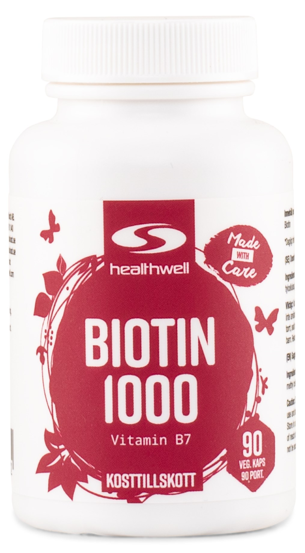 Healthwell Biotin 1000 innehåller 1000 µg högkvalitativt biotin (vitamin B7) per kapsel och är ett utmärkt val för att säkerställa tillräckligt intag av detta viktiga vitamin. Biotin, ett vattenlösligt vitamin, har flera funktioner i kroppen, bland annat stödjer det ett normalt nervsystem och energiomsättning. Dessutom fungerar biotin som näring för hår och hud och har blivit känt som ett skönhetsvitamin.