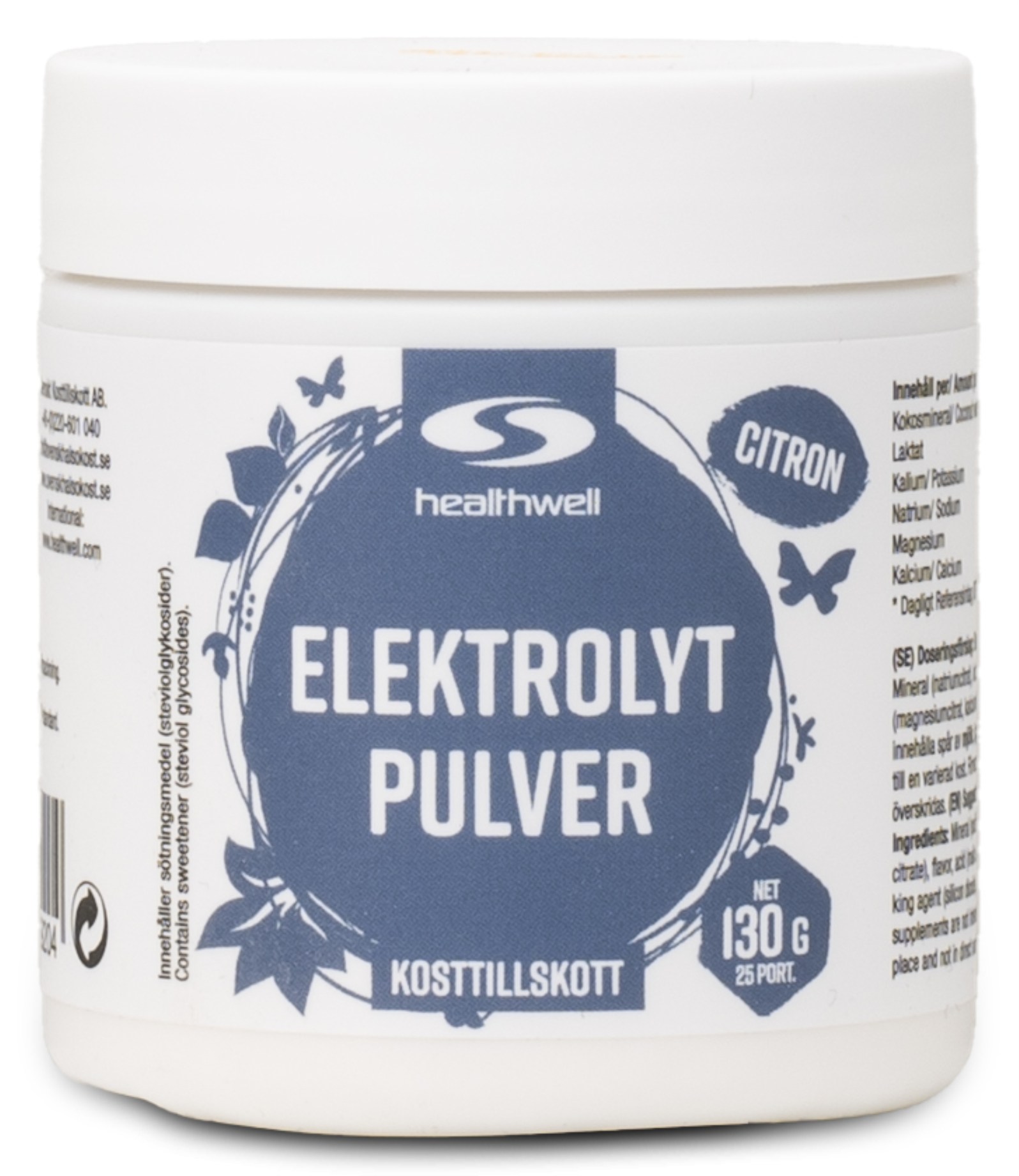 Healthwell Elektrolytpulver är ett utmärkt alternativ till vanlig vätskeersättning, särskilt om du brukar träna intensivt och länge eller vid höga temperaturer. Pulvret innehåller mineraler som räknas till elektrolyter som förbrukas snabbare under fysisk aktivitet och svettning. Genom att dricka mycket vatten och tillsätta extra elektrolyter kan kroppens vätske- och saltbalans återställas effektivt. Du njuter dessutom samtidigt av en god dryck med härlig citronsmak!