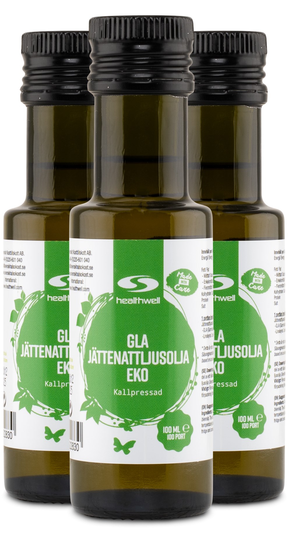 Healthwell GLA Jättenattljusolja EKO utvinns från fröna av den gula örtväxten jättenattljus. Fröna kallpressas skonsamt utan tillsatser och vid låg temperatur för att bevara deras effekt och viktiga näringsämnen. GLA Jättenattljusolja EKO är naturligt rik på GLA och linolsyra, två omättade fettsyror från omega-6. Linolsyra är en essentiell fettsyra som måste tillföras genom kosten eftersom kroppen inte kan producera den själv.