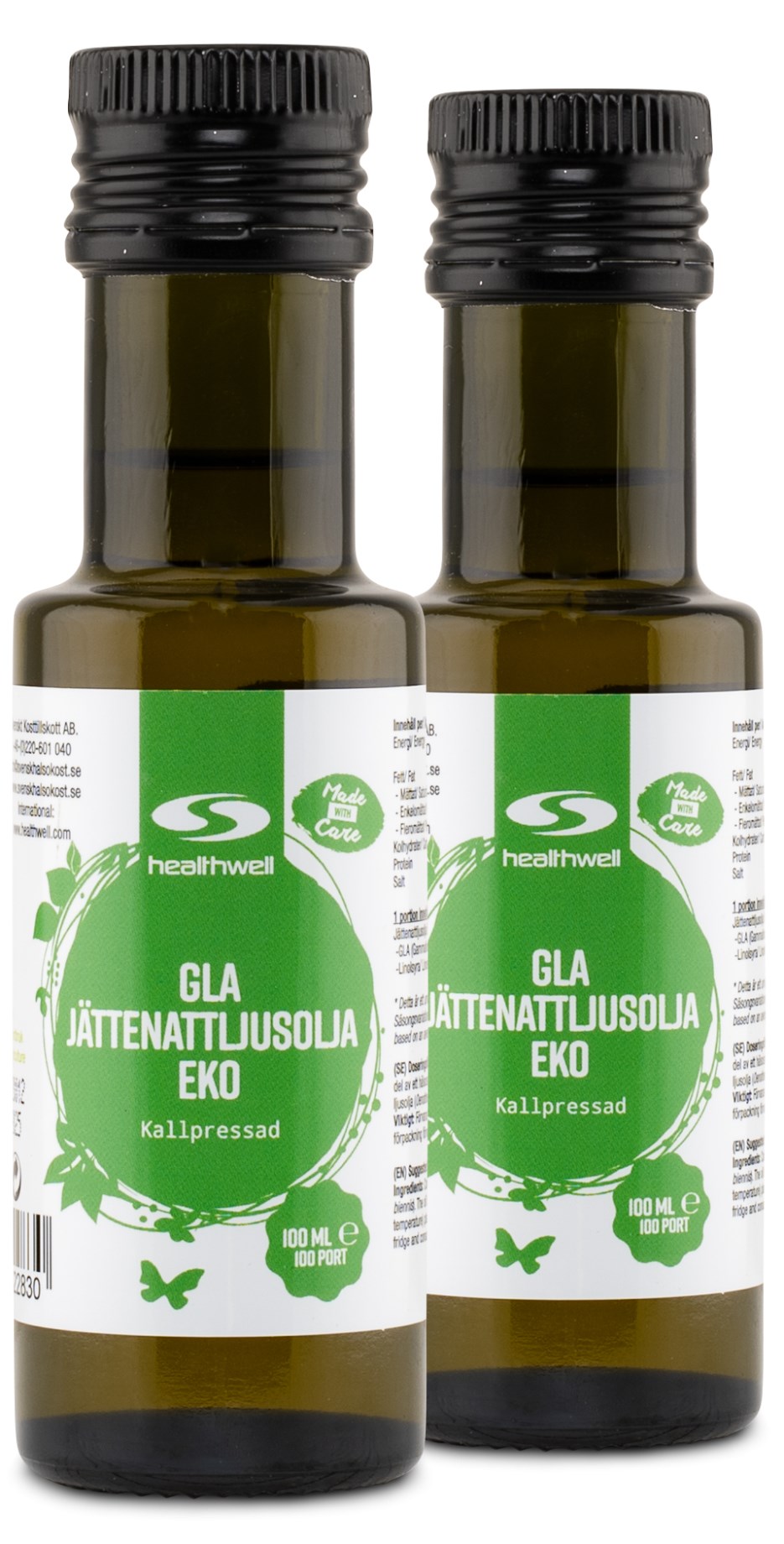 Healthwell GLA Jättenattljusolja EKO utvinns från fröna av den gula örtväxten jättenattljus. Fröna kallpressas skonsamt utan tillsatser och vid låg temperatur för att bevara deras effekt och viktiga näringsämnen. GLA Jättenattljusolja EKO är naturligt rik på GLA och linolsyra, två omättade fettsyror från omega-6. Linolsyra är en essentiell fettsyra som måste tillföras genom kosten eftersom kroppen inte kan producera den själv.