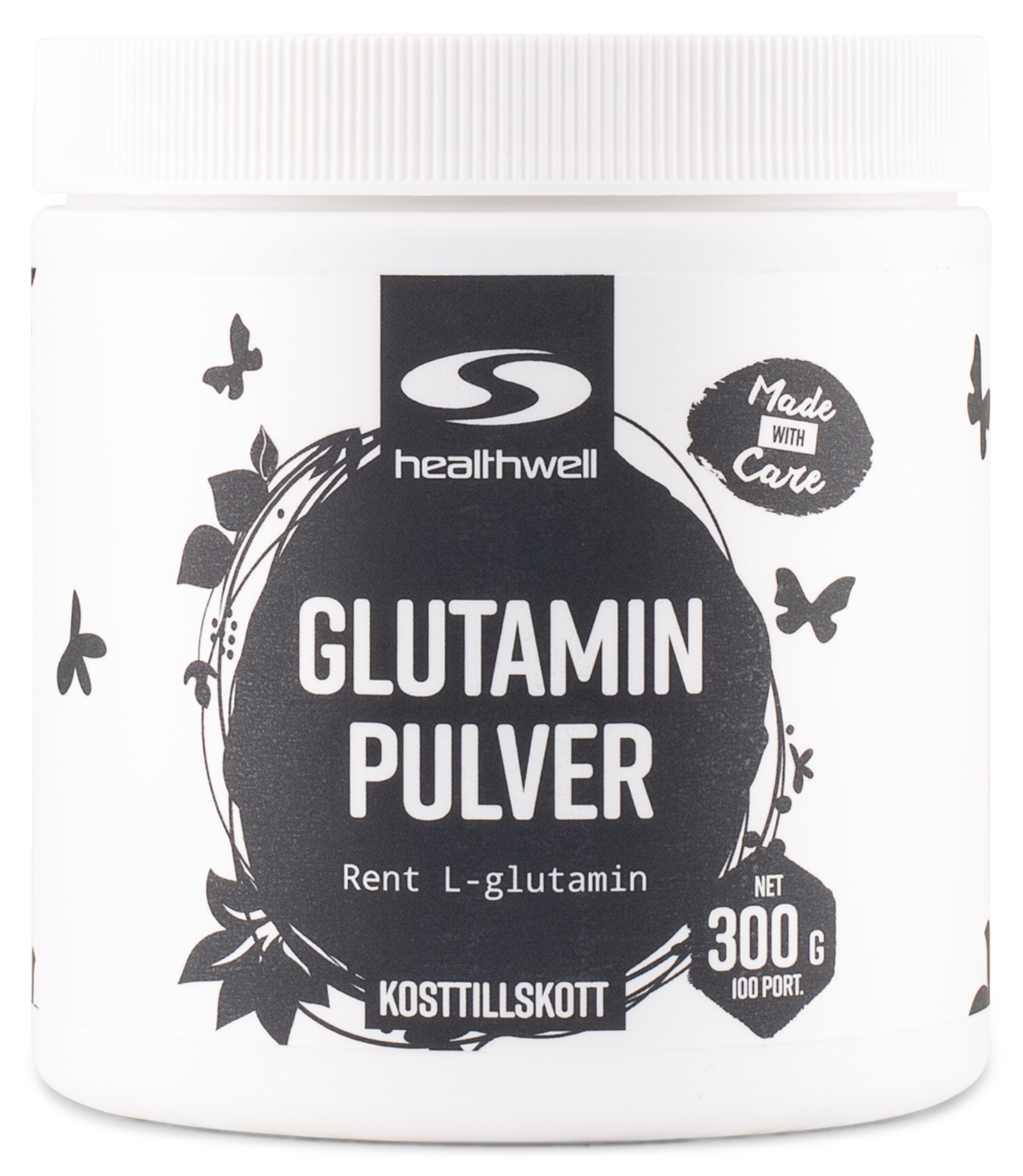 Healthwell Glutamin Pulver innehåller den essentiella aminosyran glutamin i ett koncentrerat pulver som enkelt kan blandas med valfri dryck. Glutamin är den mest förekommande aminosyran i kroppen och en viktig byggsten i protein. Kroppen kan producera glutamin själv under rätt förutsättningar, men vid vissa tillfällen kan glutamin förbrukas snabbare än kroppen hinner producera det. Då kan ett tillskott av glutamin vara fördelaktigt. Glutamin bidrar till muskeluppbyggnad och spelar en viktig roll för immunsystemet genom att fungera som bränsle för vita blodkroppar. Healthwell Glutamin Pulver är naturligt framställt genom fermentering för att garantera högsta möjliga kvalitet.