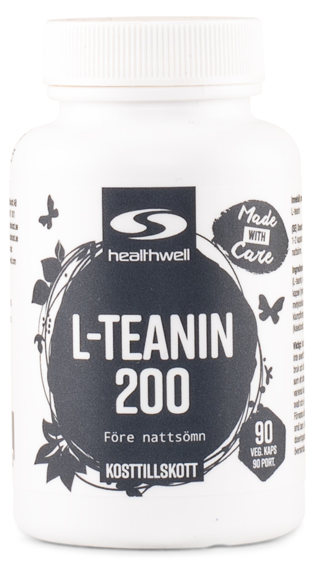 Healthwell L-teanin 200 är ett kosttillskott som innehåller en koncentrerad form av aminosyran teanin. Denna aminosyra är naturligt förekommande främst i tebuskens blad och särskilt i grönt te. I kroppen bidrar teanin till frisättningen av serotonin och dopamin från hjärnan. Dessa neurotransmittorer påverkar vår sinnesstämning och belöningssystem, vilket ger en känsla av lugn och glädje och därför är det populärt att inta grönt te innan sömn, för dess lugnande effekter. Healthwell L-teanin 200 ger 200 mg teanin per portion. Doseringsanvisningen är enkel – ta en kapsel före nattsömn.