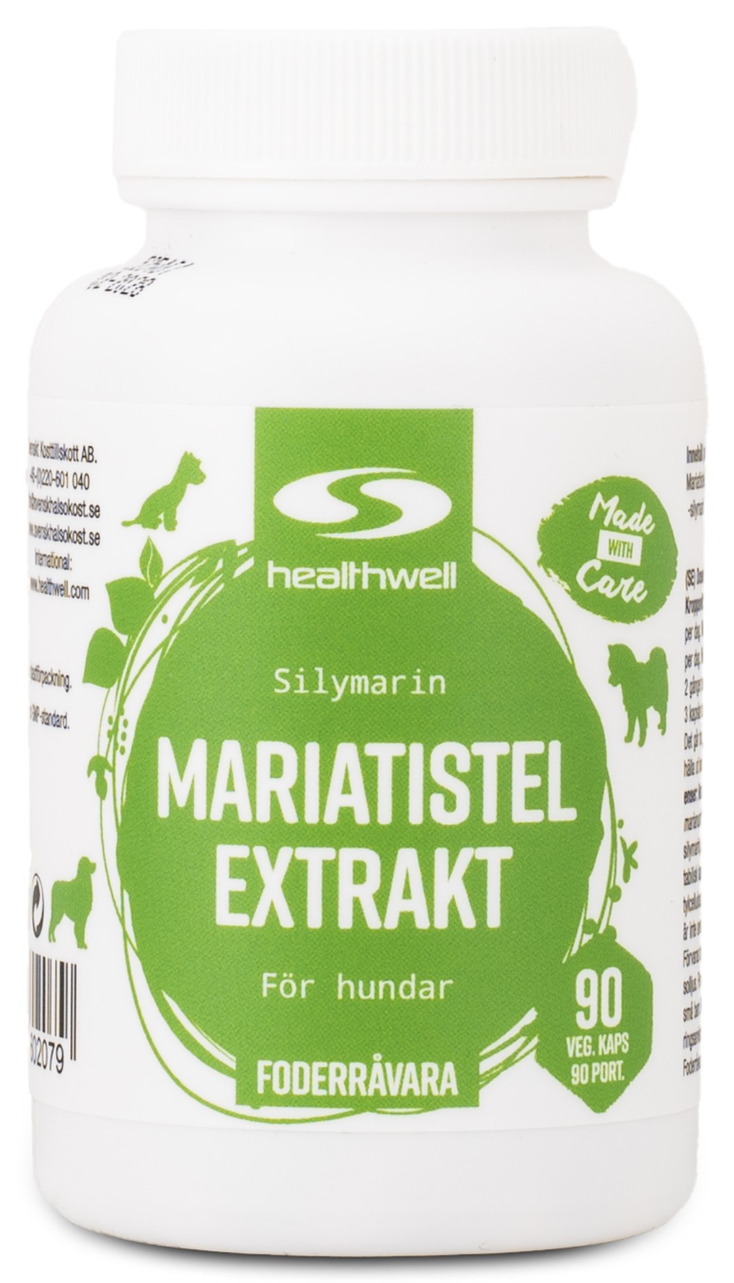 Healthwell Mariatistel är ett extrakt av mariatistel, även känd som milk thistle på engelska. Mariatistel är en välkänd ört med lång användningstradition, bland annat för större hundar. Varje kapsel innehåller 350 mg mariatistel med 40 % av det aktiva ämnet silymarin. Kokosolja är tillsatt för ökad absorption!