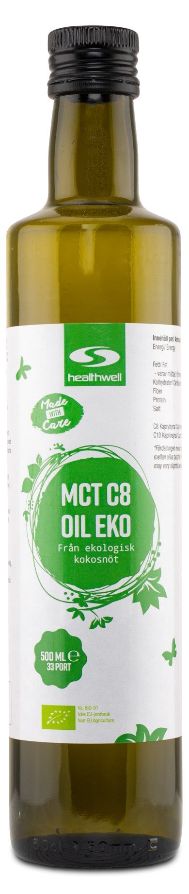 Healthwell MCT C8 Oil EKO är helt neutral i smaken och passar därför utmärkt att använda i din dagliga kost. Du kan blanda den i smoothies, dressingar och sallader för att öka ditt intag av hälsosamma fetter. Populärt är också att tillsätta MCT-olja i kaffet för att göra så kallat bulletproof coffee, vilket är vanligt inom lågkolhydratdieter som keto och LCHF. Eftersom MCT-olja tas upp snabbt av kroppen är den perfekt för att öka energinivåerna innan träning eller andra aktiviteter. (1).