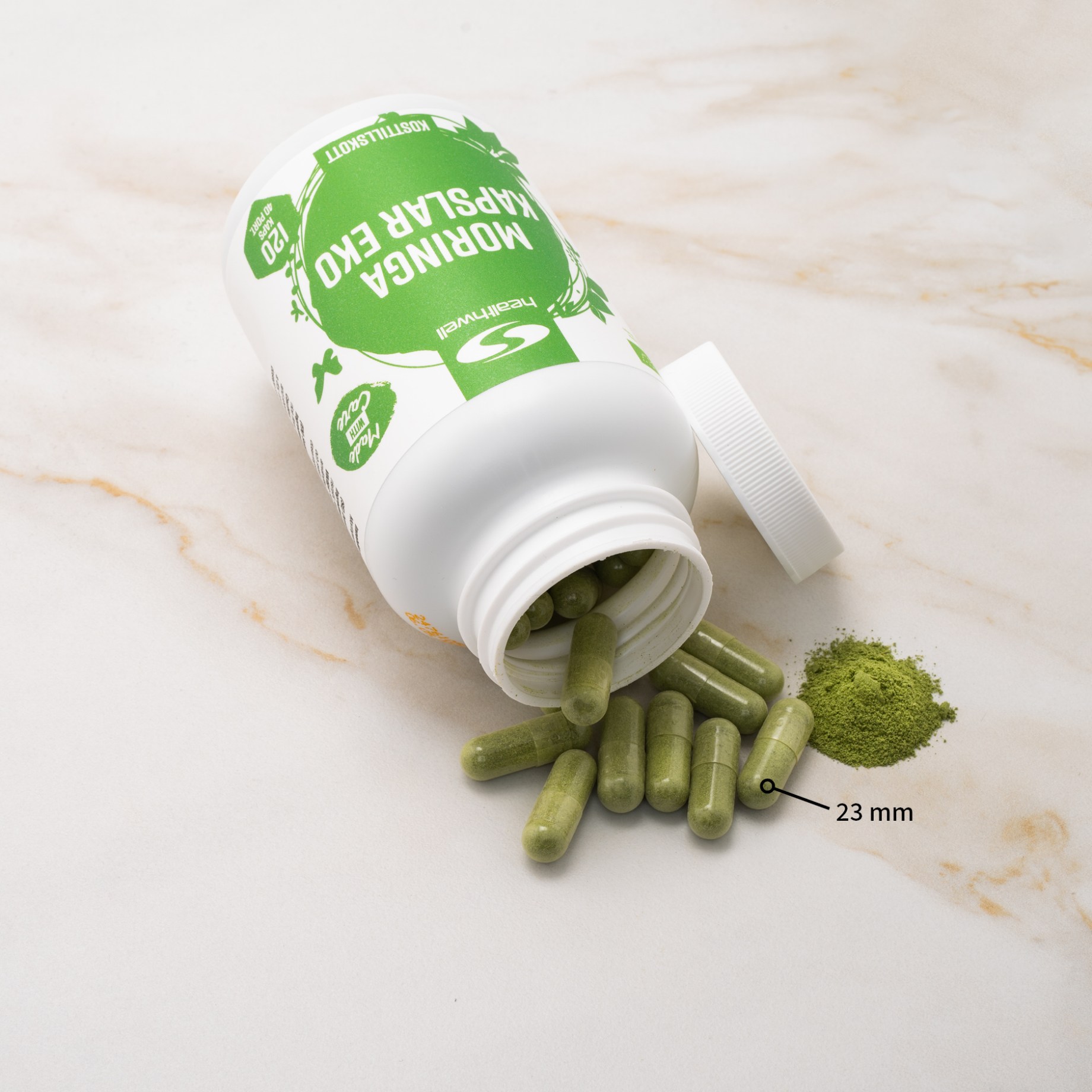 Tips! Har du svårt för kapslar finns Healthwell Moringa EKOeller Healthwell Moringa Premium i pulverform!