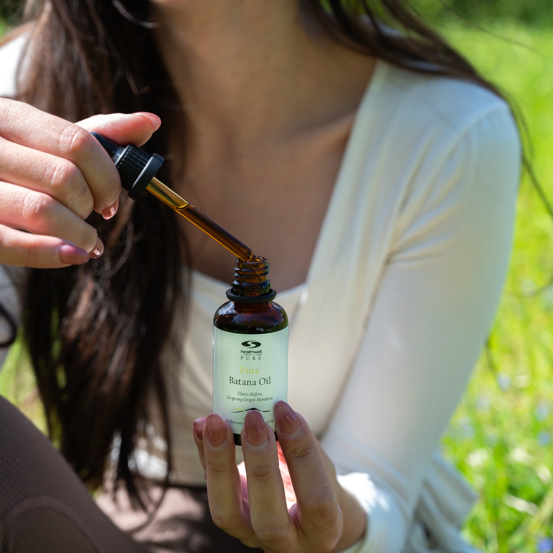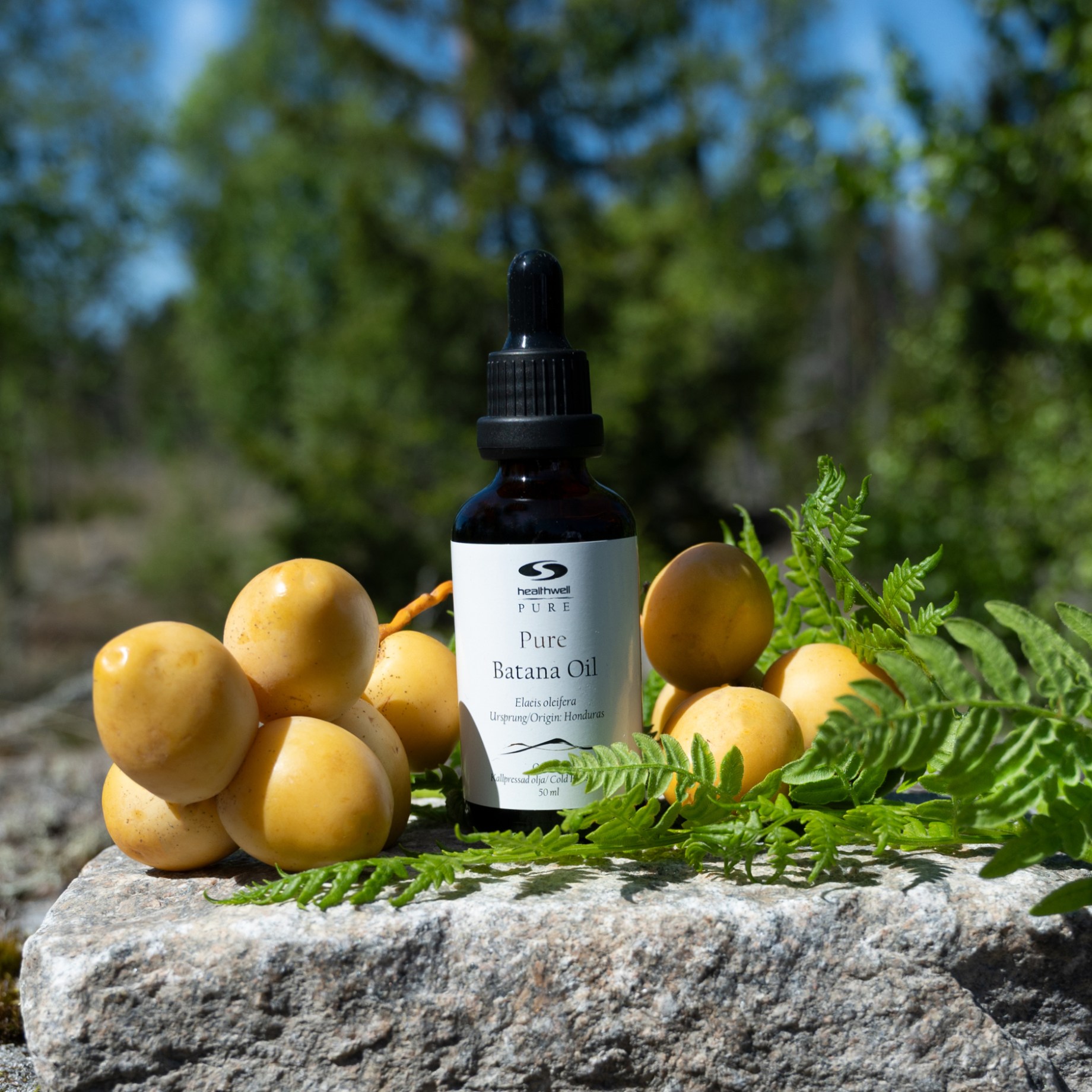 Batanaolja pressas ur kärnorna från American Palm (Elaeis oleifera) och är naturligt rik på mjukgörande fettsyror samt tokoferoler och tokotrienoler som fungerar som antioxidanter. Den har använts traditionellt i Centralamerika för att stärka håret och vårda huden. Konsistensen varierar beroende på tillverkning – från smörlik till flytande. Healthwells variant är i smidig flytande form som gör den enkel att använda i vardagen.
