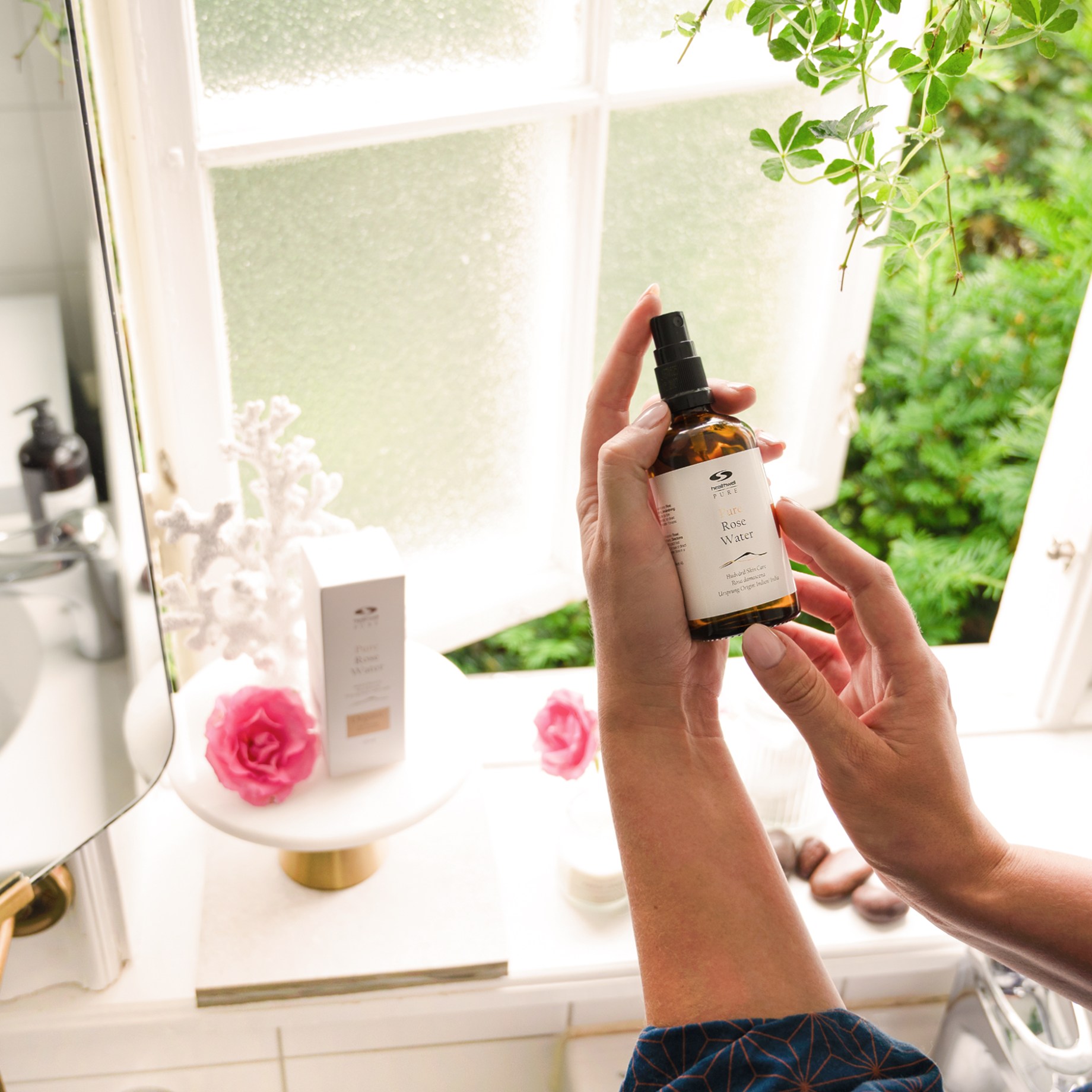 Boosta hår och hud med glans och lyster från Healthwell PURE Rosenblomsvatten EKO, ett lyxigt rosvatten som har doften av äkta rosor i varje droppe. Rosenvatten är känt för sina återfuktande och uppfriskande egenskaper, vilket passar perfekt när du vill fräscha upp både hud och hår. Healthwell PURE Rosenvatten EKO består av ett roshydrolat från ekologiska rosor. Här används hela blomman, istället för bara bladen, för att maximera rosens egenskaper och skapa ett lyxigt, näringsrikt rosvatten. Perfekt som daglig ansiktstoner, för att återfukta och ge glans åt håret, eller som ett naturligt alternativ till parfym. Levereras i en glasflaska med spraymunstycke för enkel applicering.