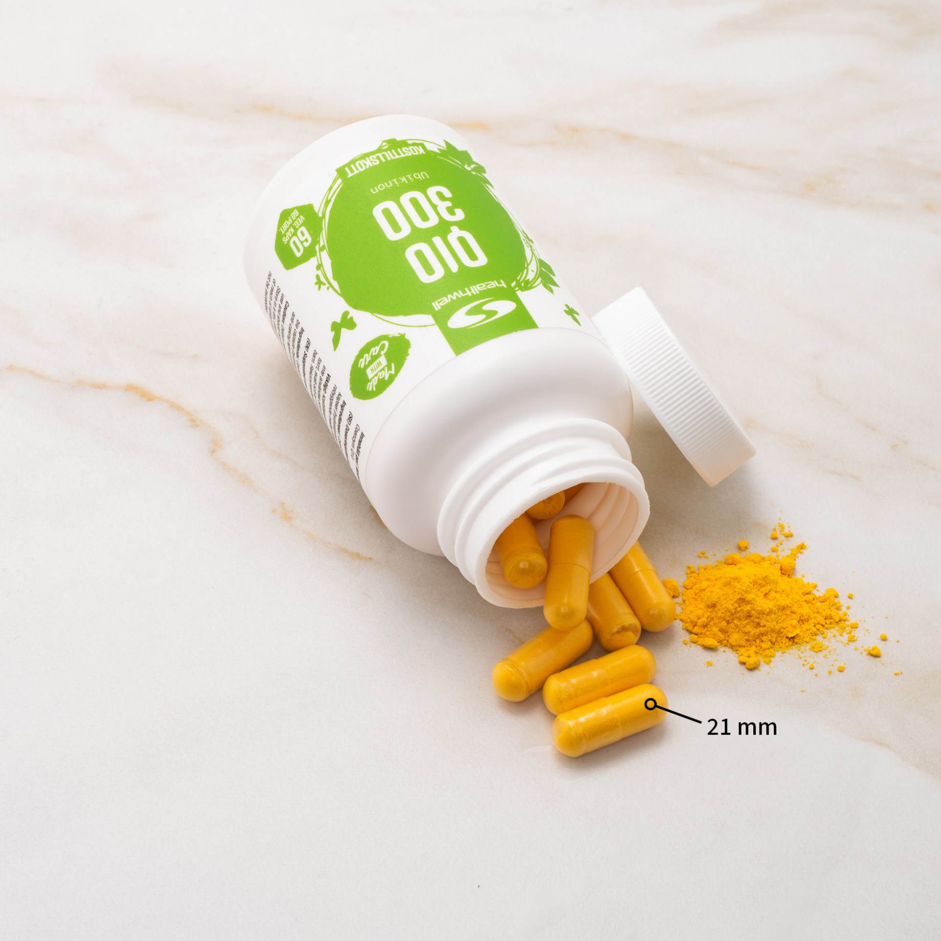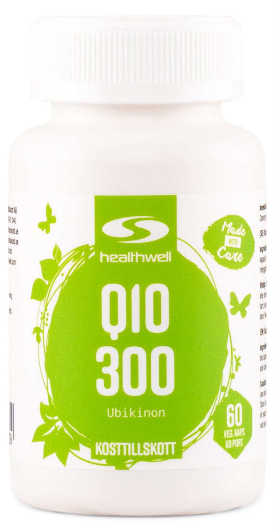 Healthwell Q10 300 är ett högdoserat kosttillskott med 300 mg Q10 per kapsel. Dessa vegetabiliska kapslar innehåller Coenzym Q10, även känt som ubikinon, ett ämne som kroppen lätt kan ta upp. Healthwell Q10 300 förstärks med MCT-olja från kokosnöt för att säkerställa ett optimalt upptag, eftersom Q10 är fettlösligt. Q10 verkar likt en vitamin och är ett kroppseget ämne som naturligt förekommer i våra celler, där det spelar en central roll i energiomsättningen. Brist på Q10 kan leda till trötthet och minskad energi. Dessutom fungerar Q10 som en antioxidant och skyddar kroppens celler från skador som orsakas av fria radikaler.