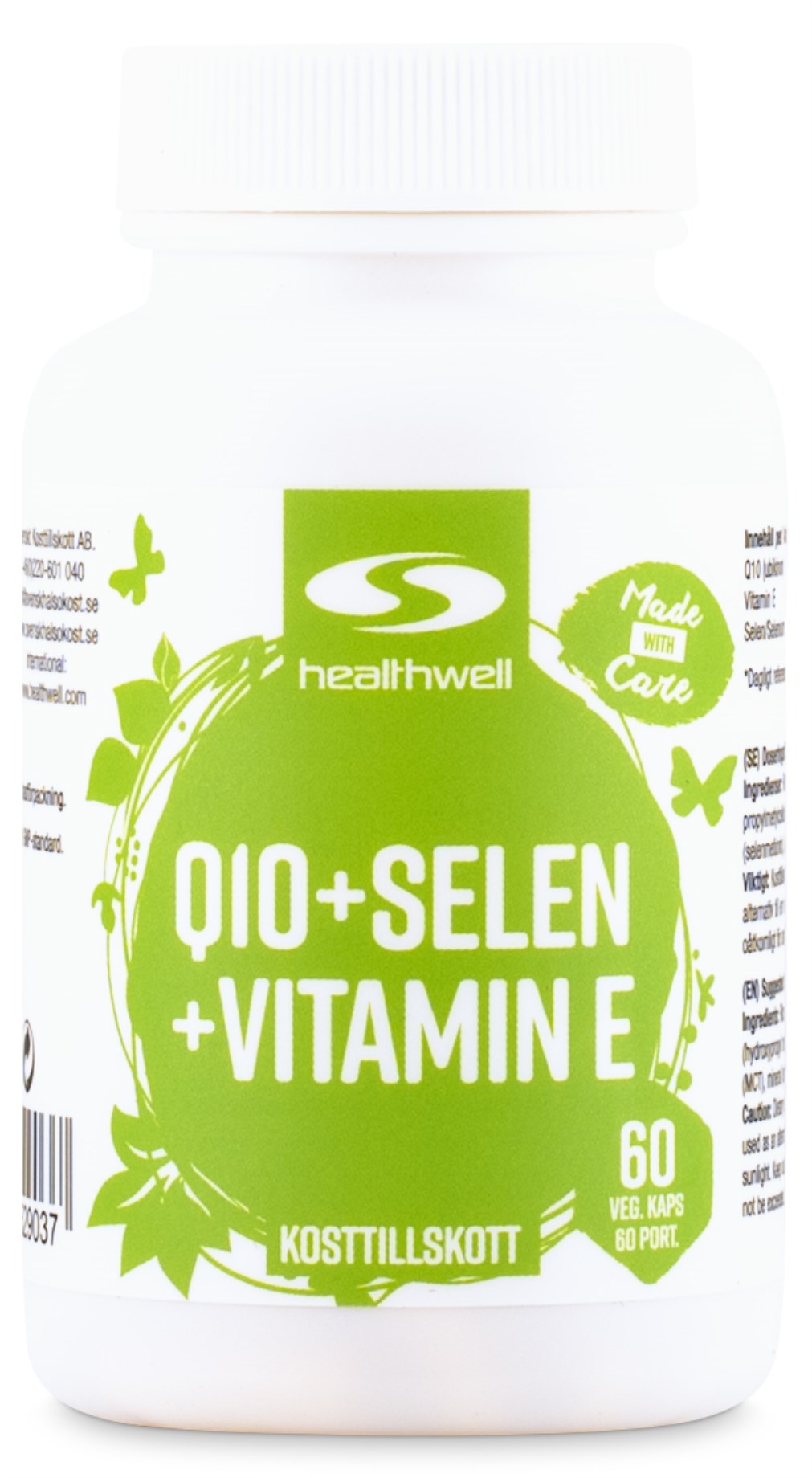 Healthwell Q10 + Selen + Vitamin E innehåller 100 mg ubikinon Q10 per kapsel. Q10 finns naturligt i kroppen och återfinns främst i hjärtat och hjärnan där det fungerar som en antioxidant som skyddar cellerna. Ämnet har även en viktig roll i kroppens energiproduktion. Healthwell Q10 + Selen + Vitamin E är dessutom berikad med vitamin E och selen för bästa effekt - två kraftfulla antioxidanter som skyddar våra celler mot oxidativ stress. Selen krävs för att kroppen ska tillgodogöra sig Q10, och mineralet samverkar med vitamin E. Doseringen är 1 kapsel dagligen tillsammans med måltid, ett bra kostkomplement för dig som vill säkerställa nivåerna av Q10.