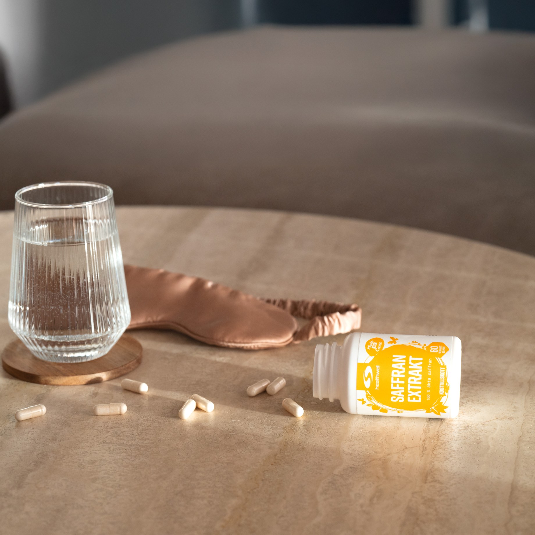 Flera studier har undersökt saffran i samband med sömn. I en klinisk studie fick deltagare 15,5 mg saffransextrakt dagligen under sex veckor, vilket gav förbättringar i insomningstid och total sömntid jämfört med placebo. (1) I en systematisk översikt med fem randomiserade studier och totalt 379 personer jämförs saffran med placebo, och visar liknande resultat; saffran framstår som lovande för både sömnens längd och vissa delar av sömnkvaliteten. (2) Saffran har även studerats i relation till stämningsläge och mentalt välbefinnande. Även om resultaten är lovande behövs det idag mer forskning för att klarlägga hur saffran påverkar kropp och sinne.