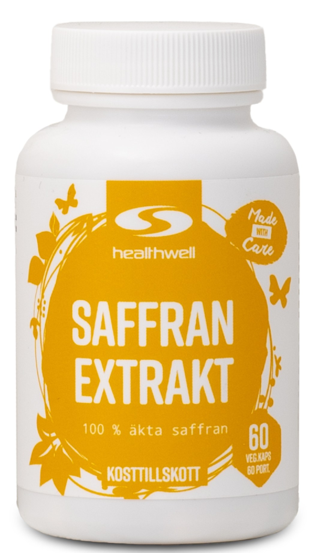 Extraktet i Healthwell Saffran Extrakt är naturligt rikt på crocin, som ger den karakteristiska gula färgen. Andra naturliga ämnen i saffran är safranal, picrocrocin och crocetin.