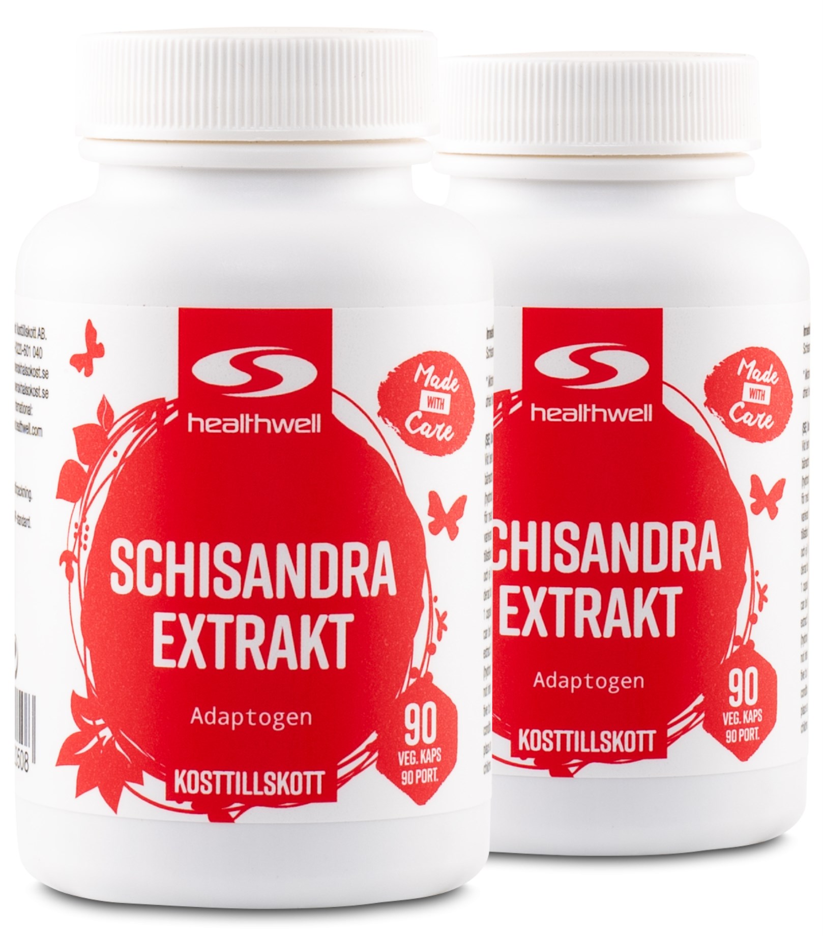 Schisandra extrakt från Healthwell innehåller bärextrakt från den adaptogena örten schisandra, med 1,5 gram torkade bär per kapsel. Schisandra tas snabbt upp i kroppen och har en långsam nedbrytning, vilket bidrar till en bra effekt. Adaptogener är kända för sina unika egenskaper och hjälper kroppen att anpassa sig inför påfrestningar som bland annat stress.