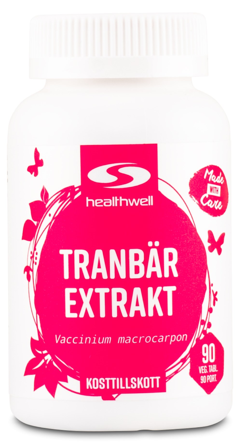 Healthwells Tranbärsextrakt kommer i form av vegetabiliska tabletter som innehåller ett koncentrerat extrakt av tranbär. Detta extrakt är betydligt mer koncentrerat än vanligt tranbärspulver, där 1 kilo extrakt motsvarar hela 36 kilo tranbär. Tabletterna tillverkas med vegetabiliska ingredienser som kokosolja och cellulosa, och pressas ihop genom kallpressning för att bevara tranbärens naturliga näringsämnen så mycket som möjligt.