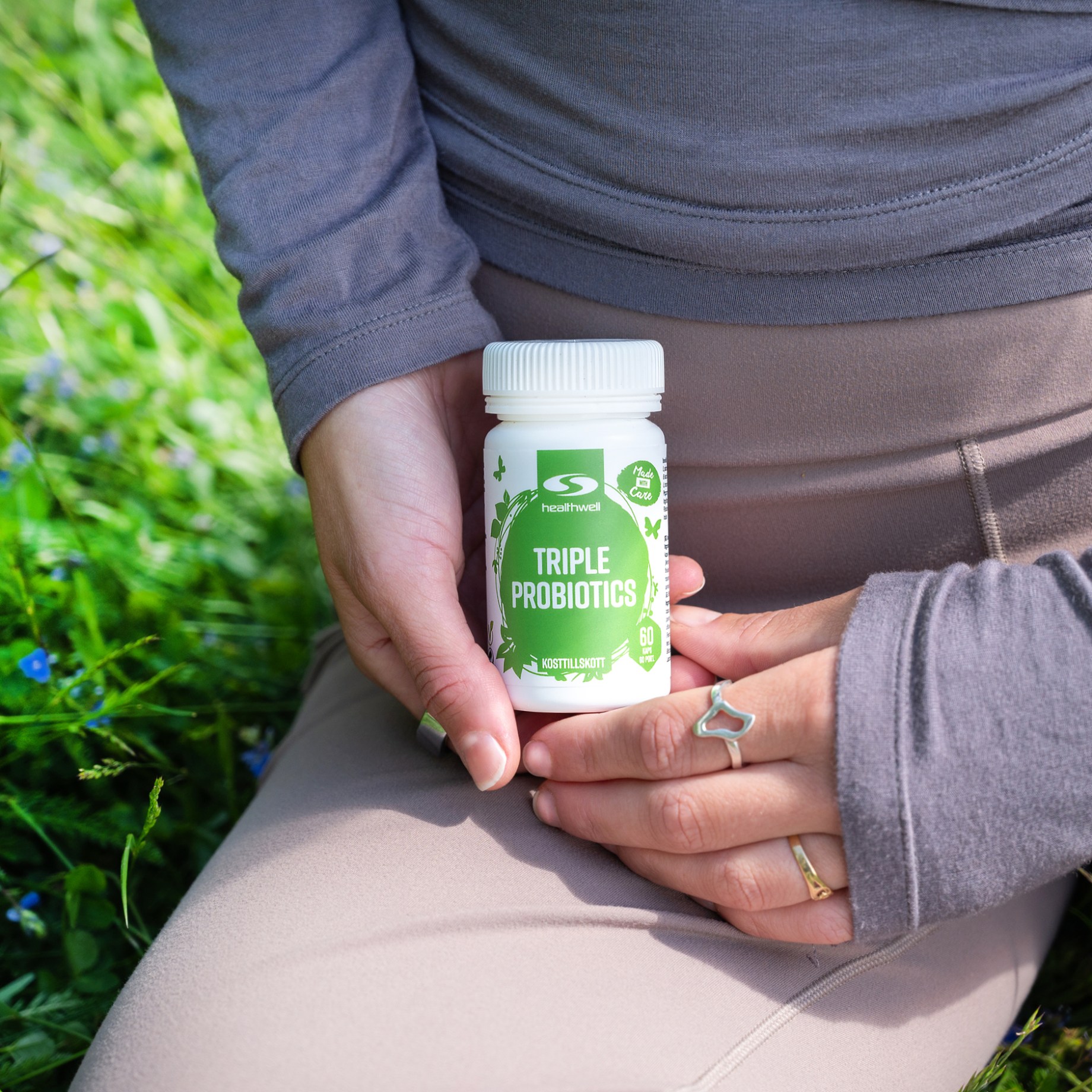 Healthwell Triple Probiotics innehåller tre välkända och dokumenterade stammar, optimerade för bästa möjliga effekt: Lactobacillus rhamnosus GG, Lactobacillus plantarum och Bifidobacterium animalis. De har alla visat positiva resultat i studier av exempelvis stressmage.
