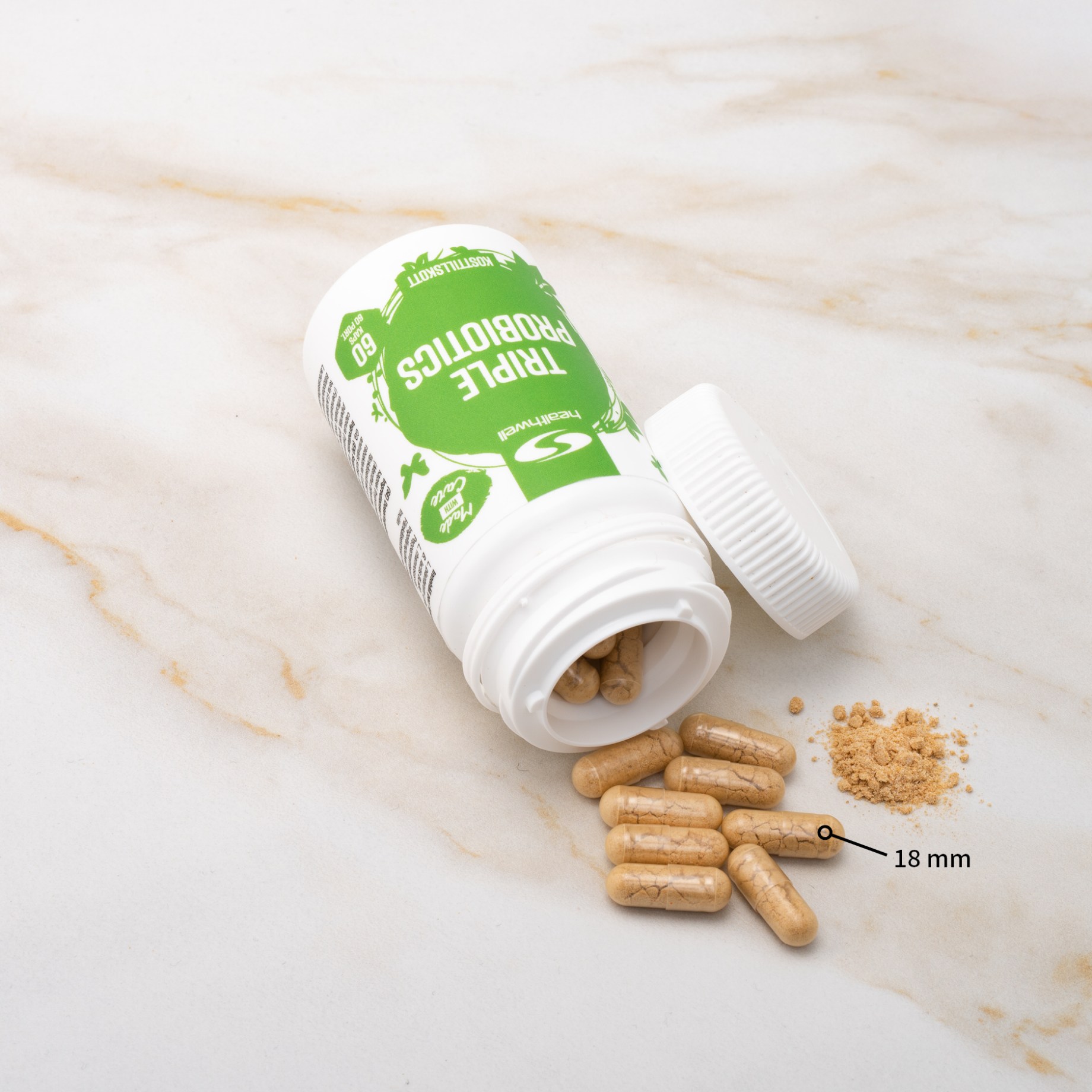 Healthwell Triple Probiotics kapslar är designade för att motstå magsyra och säkerställa att bakterierna når tarmen där de gör mest nytta. Detta förbättrar bakteriernas överlevnad och effektivitet i tarmfloran.