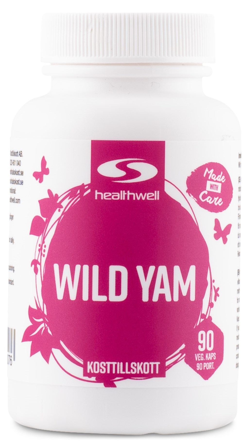 Healthwell Wild Yam är ett tillskott med extrakt från växten jamsrot som ger dig 200 mg jamsrot per kapsel. Jamsrot är populärt bland kvinnor, tack vare innehållet av diosgenin. Diosgenin har studerats för vanliga besvär inom hormonbalans och är intressant i sin funktion som fytoöstrogen. Fytoöstrogener kan bidra till att underlätta problem som orsakas av låga östrogennivåer, och på så sätt hjälpa till att lindra symtom som kan uppkomma till exempel i övergångsåldern och PMS. Healthwell Wild Yam innehåller hela 16 % diosgenin per kapsel. Jamsrot är även uppskattat inom örtmedicin, där den länge använts i syfte att lindra hormonella besvär hos kvinnor.