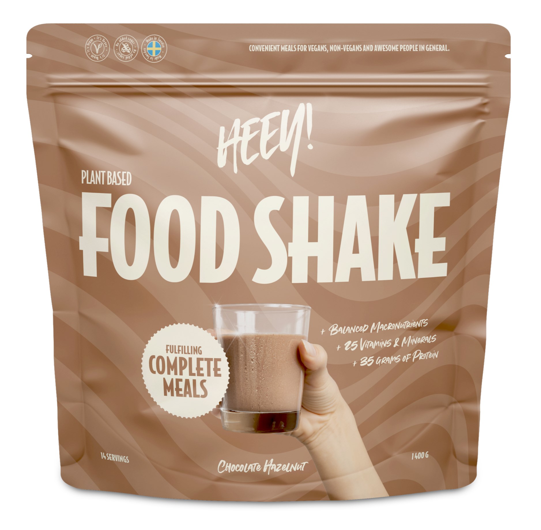 HEEY Food Shake är en vegansk och näringsrik måltidsersättning som innehåller 25 vitaminer och mineraler! Varje portion innehåller över 35 gram protein i kombination med balanserade kolhydrater och fett, för att stödja kroppens normala funktioner samt underhålla din muskelmassa. Ett utmärkt komplement till din dagliga kost eller när du är på språng och behöver något enkelt att få i dig. HEEY Food Shake kan antingen tas som en fullstor måltid, för att hålla dig mätt i flera timmar, eller som ett mellanmål. Måltidsersättningen är laktos- och glutenfri.