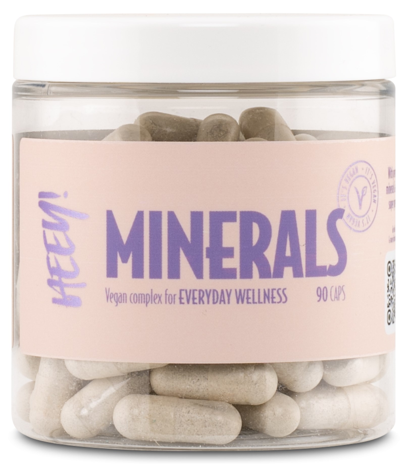 HEEY Minerals är ett veganskt multimineraltillskott med 11 viktiga mineraler som har flera viktiga funktioner i kroppen. Innehåller bland annat kalcium, järn, zink, koppar, krom, jod, mangan, molybden, kalium, selen och bor. Tillskottet innehåller även en näringsrik greensblandning med ingredienser som spirulina, broccolipulver och vetegräs. Med HEEY Minerals kan du säkerställa att du får i dig alla viktiga mineraler på ett enkelt sätt.