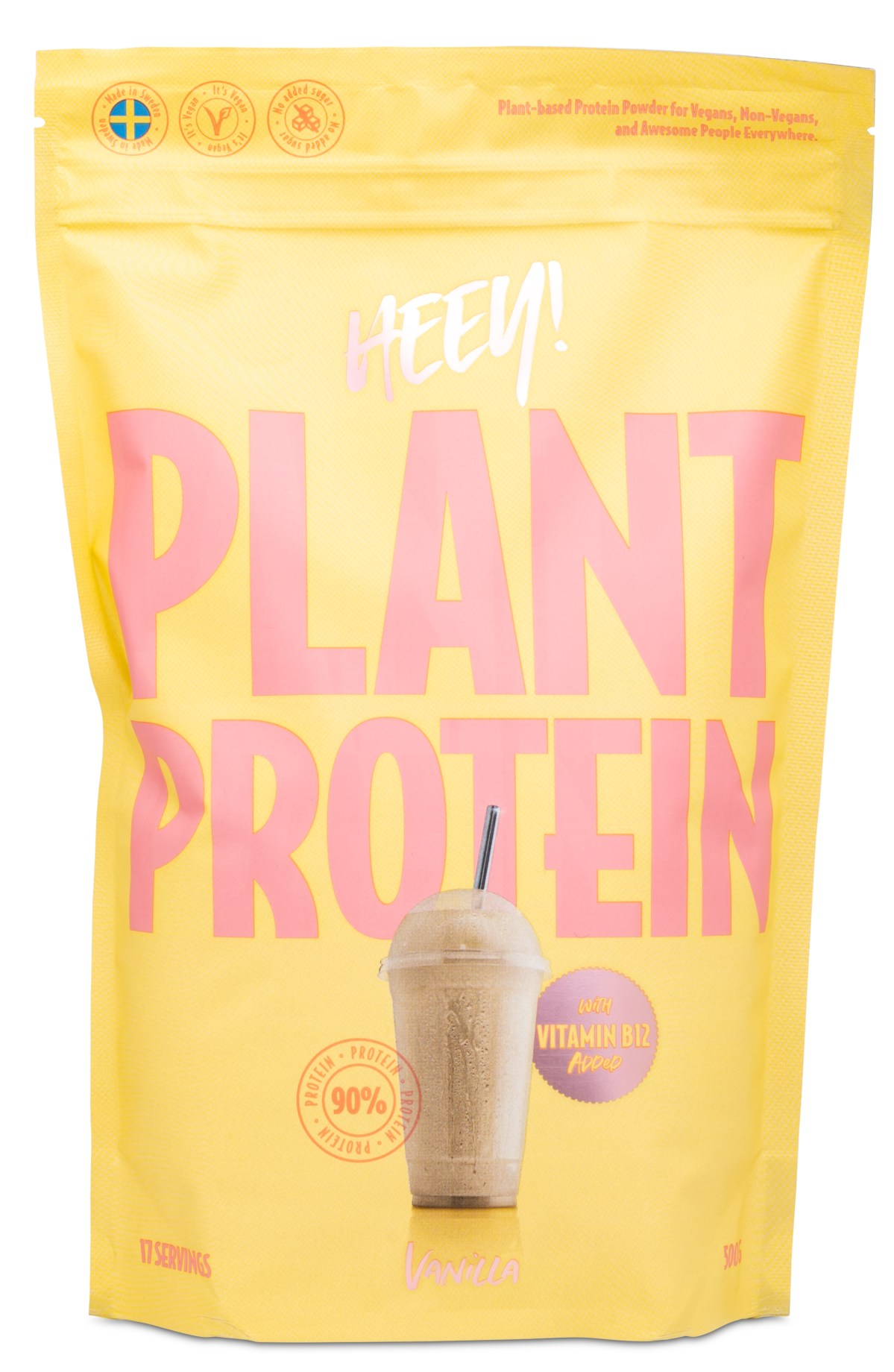 Med HEEY Veganskt Protein garanterar du lätt ditt proteinintag - perfekt innan eller efter träning! Proteinet är 100 % plantbaserat och är gjort av ärtprotein- och sojaproteinisolat. Pulvret blandas dessutom lätt med vatten eller valfri vegetabilisk dryck. Testa även som frukost eller mellanmål i antingen en smoothie eller bowl. Med god smak från riktiga frukter och bär, utan tillsatt socker eller gluten. Smakerna Vanilj och Choklad är berikade med vitamin B12.
