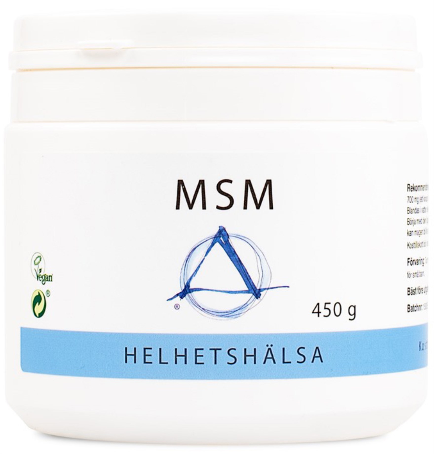 MSM i pulverform som löser sig lätt i vätska utan att klumpa sig. Pulvret är helt vegetabiliskt och passar därför även dig som är vegan. MSM är en svavelförening som förekommer naturligt i kroppens celler. Svavel är också en viktig beståndsdel i kroppens bindväv, brosk, hår och hud.