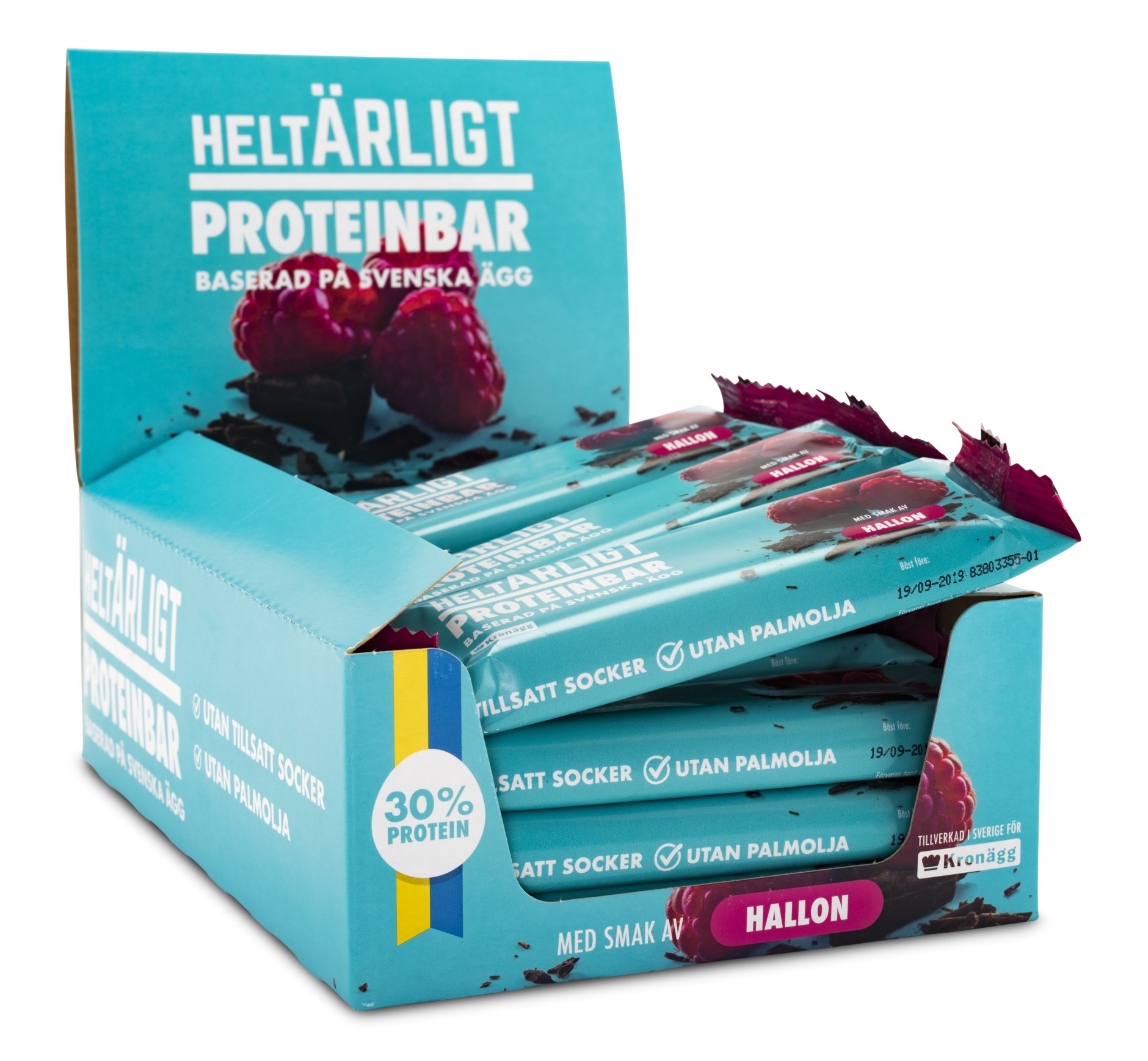 Helt Ärligt Protein Bar är ett proteinrikt mellanmål från Kronägg, som fungerar perfekt att ha med i gymväskan för att fylla på energin under dagen. Denna proteinbar framställs av svenska ägg som är naturligt rika på aminosyror och dessutom är både gott och hälsosamt. Helt Ärligt Protein Bar är dessutom fri från socker och innehåller 30 % protein. Ät gärna i samband med träning för att ge musklerna rätt förutsättningar för återhämtning och tillväxt med hjälp av äggprotein.
