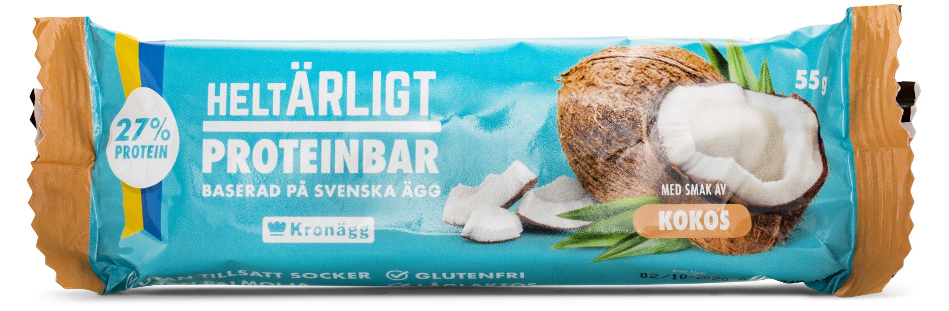 Helt Ärligt Protein Bar är ett proteinrikt mellanmål från Kronägg, som fungerar perfekt att ha med i gymväskan för att fylla på energin under dagen. Denna proteinbar framställs av svenska ägg som är naturligt rika på aminosyror och dessutom är både gott och hälsosamt. Helt Ärligt Protein Bar är dessutom fri från socker och innehåller 30 % protein. Ät gärna i samband med träning för att ge musklerna rätt förutsättningar för återhämtning och tillväxt med hjälp av äggprotein.
