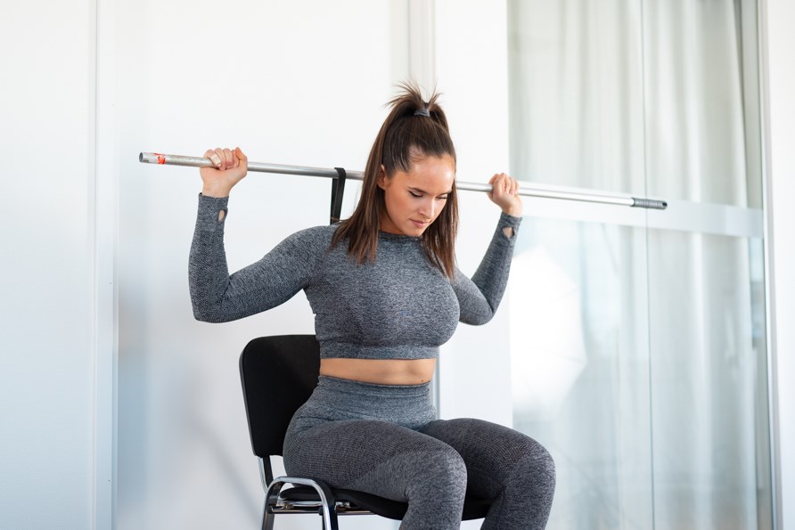 Sittande axelpress - Långt gummiband och kvast