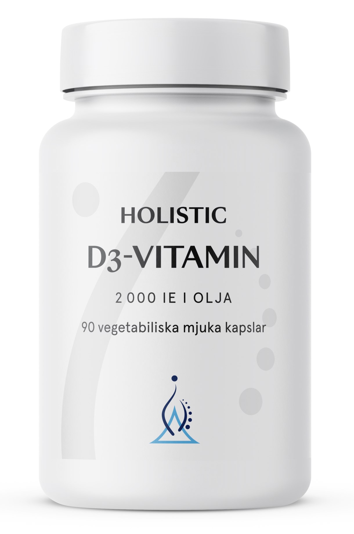 Vitamin D kallas ibland för solskensvitaminet, eftersom vår främsta källa till det är solens strålar mot vår hud. Under den mörka hösten och vintern har de flesta av oss därför svårt att få i sig en tillräcklig mängd och tillskott som detta är då ovärderligt. Holistic Vitamin D3 är högdoserad med naturligt D3 utvunnet från fårullsfett. Då D-vitamin är ett fettlösligt vitamin har man även tillsatt en mängd kallpressad kokosolja för bästa upptagningsförmåga.