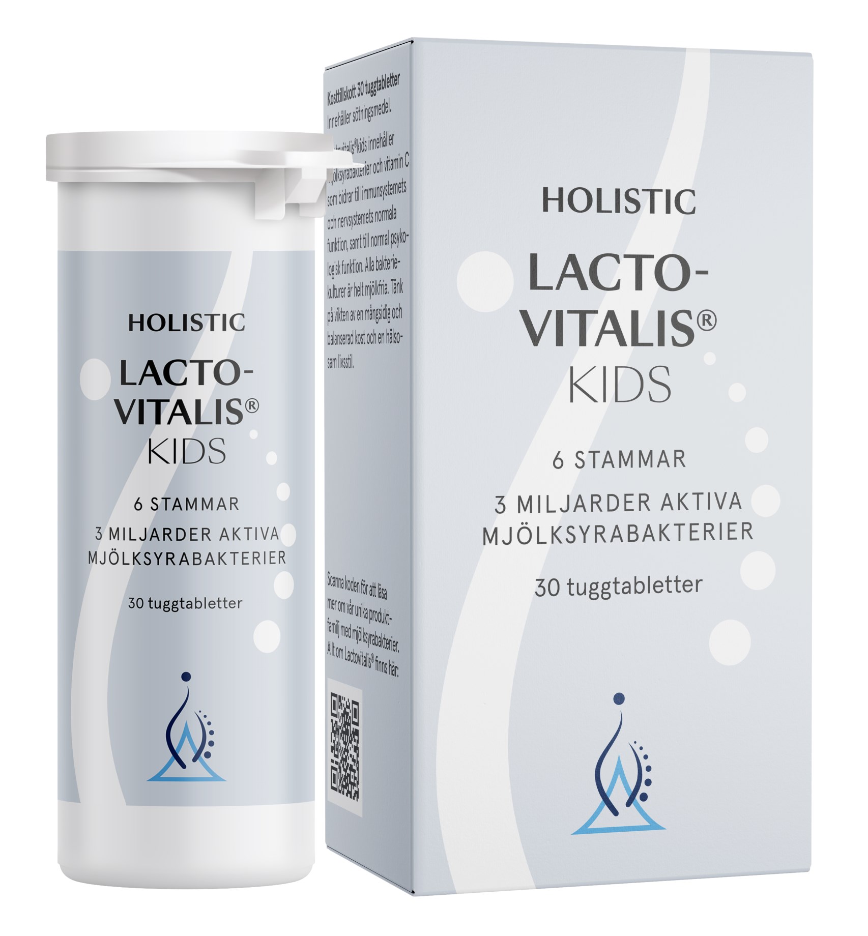 Holistics LactoVitalis Kids är en god tuggtablett med citronsmak, och innehåller så mycket som tre miljarder levande mjölksyrabakterier. I våra tarmar lever normalt mer än 500 olika arter av bakterier som ingår i det vi kallar för tarmfloran. Holistic LactoVitalis Kids innehåller dessutom vitamin C som bidrar till immunsystemets funktion.