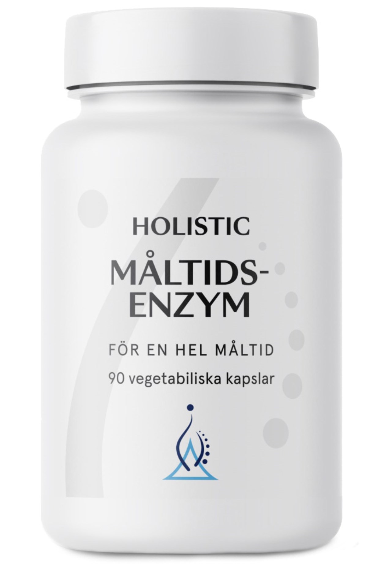 Holisitc Måltidsenzym är ett kosttillskott som innehåller vegetabiliska matsmältningsenzymer. Ibland kan vår matsmältning påverkas negativt av stress och dålig kosthållning vilket kan resultera i en uppsvälld och orolig mage, eftersom kroppen nedprioriterar produktionen av matsmältningsenzymer. I dessa situationer kan det vara till hjälp med ett kosttillskott som innehåller matsmältningsenzymer, eftersom det kan underlätta nedbrytningen av maten och öka upptaget av näringsämnen.