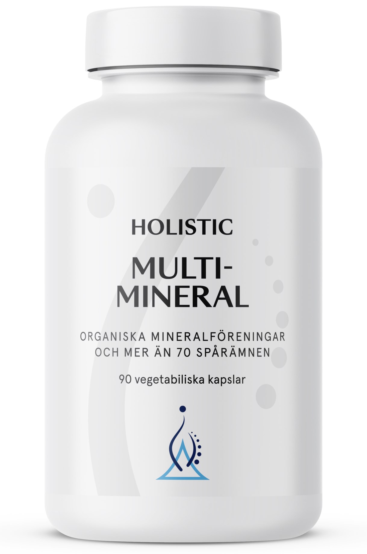 Holistic har samlat 13 olika mineraler och över 70 olika spårämnen i ett och samma tillskott, perfekt för dig som vill säkerställa ditt dagliga intag av viktiga mineral. Produkten innehåller både organiska och oorganiska mineralföreningar, beroende på vad som är bäst för varje ämne och hur kroppen lättast kan ta upp det. Proportionerna är väl avvägda för rimliga doser av vardera ämne. Kapslarna är helt vegetabiliska och lätta att svälja.