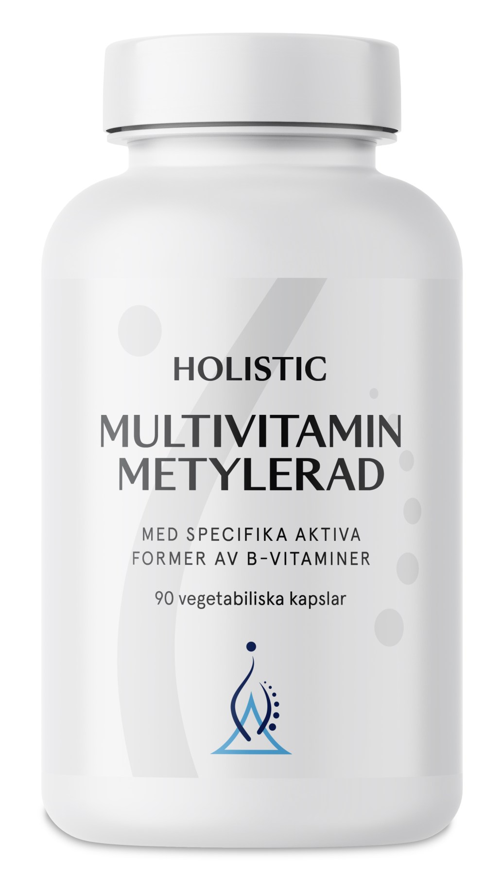 Holistic Multivitamin Metylerad är ett multivitamintillskott med ett högdoserat innehåll. I kapslarna finns även kolin, citrusbioflavonoider och speciellt utvalda källor till vitamin B12, vitamin B6, vitamin B2 samt folat. Alla dessa vitaminer är viktiga för kroppens metaboliska reaktioner och bidrar till reglering av ämnesomsättning. I Holistic Multivitamin Metylerad finns även vitamin A, vitamin C och vitamin D som bidrar till immunsystemets normala funktion. Vitamin A bidrar även till normal hud och vitamin C tillsammans med folsyra bidrar till att minska trötthet och utmattning. Kapseln är vegetabilisk och tillverkas av pullulan från majs. Med ett multivitamintillskott kan du säkerställa ditt dagliga intag av vitaminer.