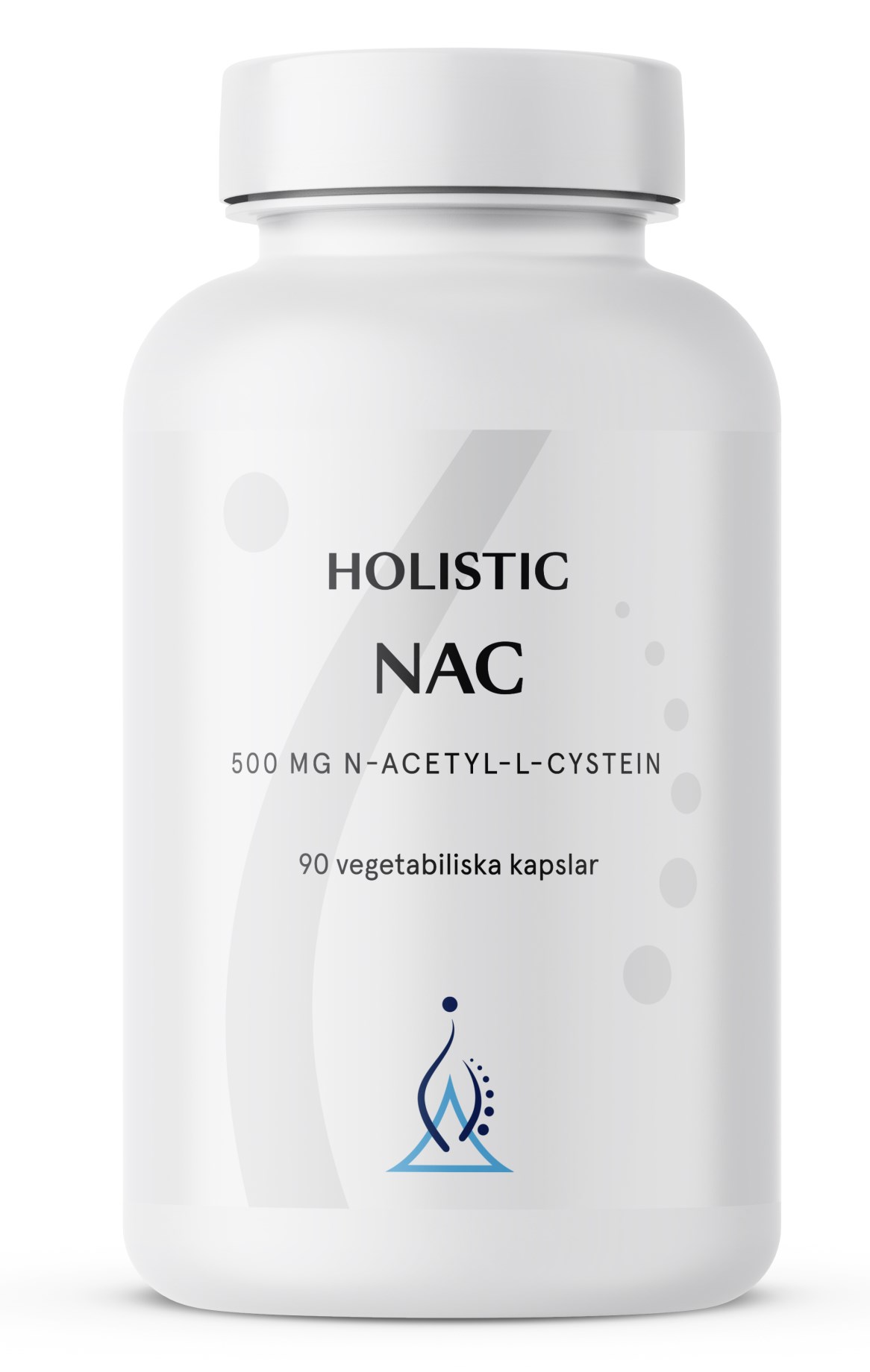 Holistic NAC är ett kosttillskott med N-acetylcystein, en svavelinnehållande aminosyra. Cystein stödjer produktionen av glutation i kroppen och kan därför påverka kroppens glutationnivåer. Det deltar även i syntesen av keratin som finns i hud, hår, naglar och bindväv. Holistic NAC innehåller 500 mg NAC per kapsel i veganvänliga kapslar.