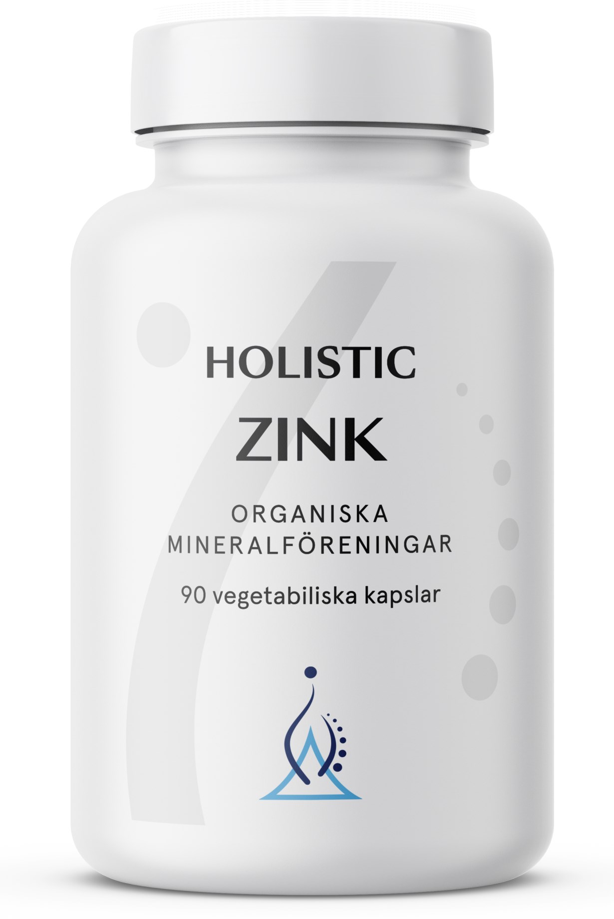 Holistic Zink komplex innehåller tre organiska former av zink: malat, pikolinat och Albion® bisglycinat. Albion® bisglycinat, en aminosyrakelaterad form, förbättrar zinkupptaget i kroppen och med endast en kapsel får du smidigt i dig det dagliga behovet av zink. Zink är avgörande för över 300 enzymreaktioner och särskilt viktigt för dig med en aktiv livsstil eller som tränar mycket. Zink stödjer bland annat metabolismen av kolhydrater, fett och protein samt stödjer immunsystemets normala funktion, normala testosteronnivåer och skyddar mot oxidativ stress. Dessutom främjar zink en stark benstomme samt normalt hår, hud, naglar, syra-basbalans och syn. Holistic Zink komplex är 100 % vegansk och kommer i burkar av 96 % biobaserad plast.