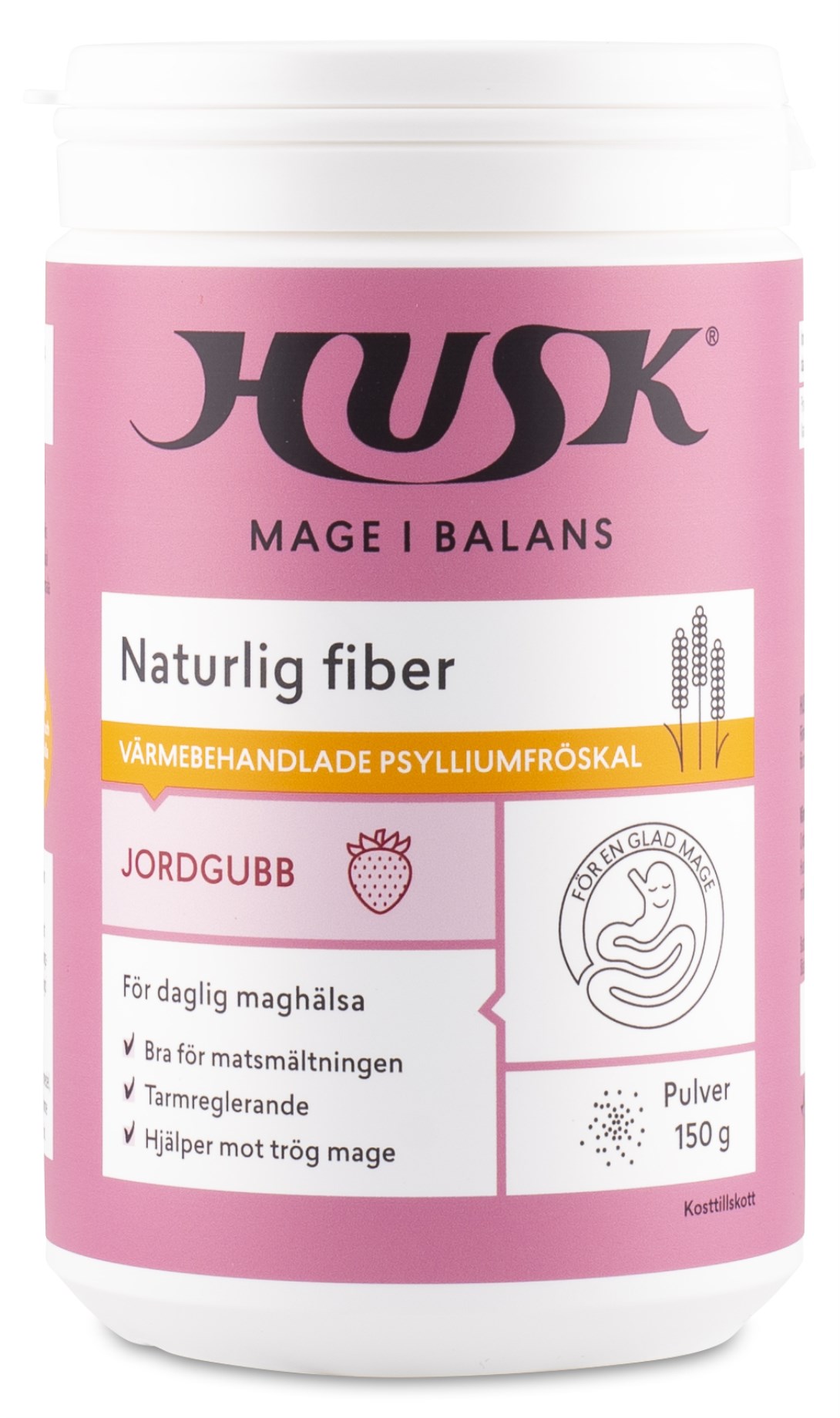 Husk Psyllium Mage i Balans Jordgubbe består av psylliumfröskal och jordgubbsflingor i utmärkt balans. God att strö över yoghurt, blanda i ett glas juice eller ha i andra kalla rätter för normal matsmältning och tarmfunktion. Psylliumfröskal innehåller 85 % kostfiber och är skonsamt mot magen. Det hjälper även till att upprätthålla normala kolesterolnivåer.