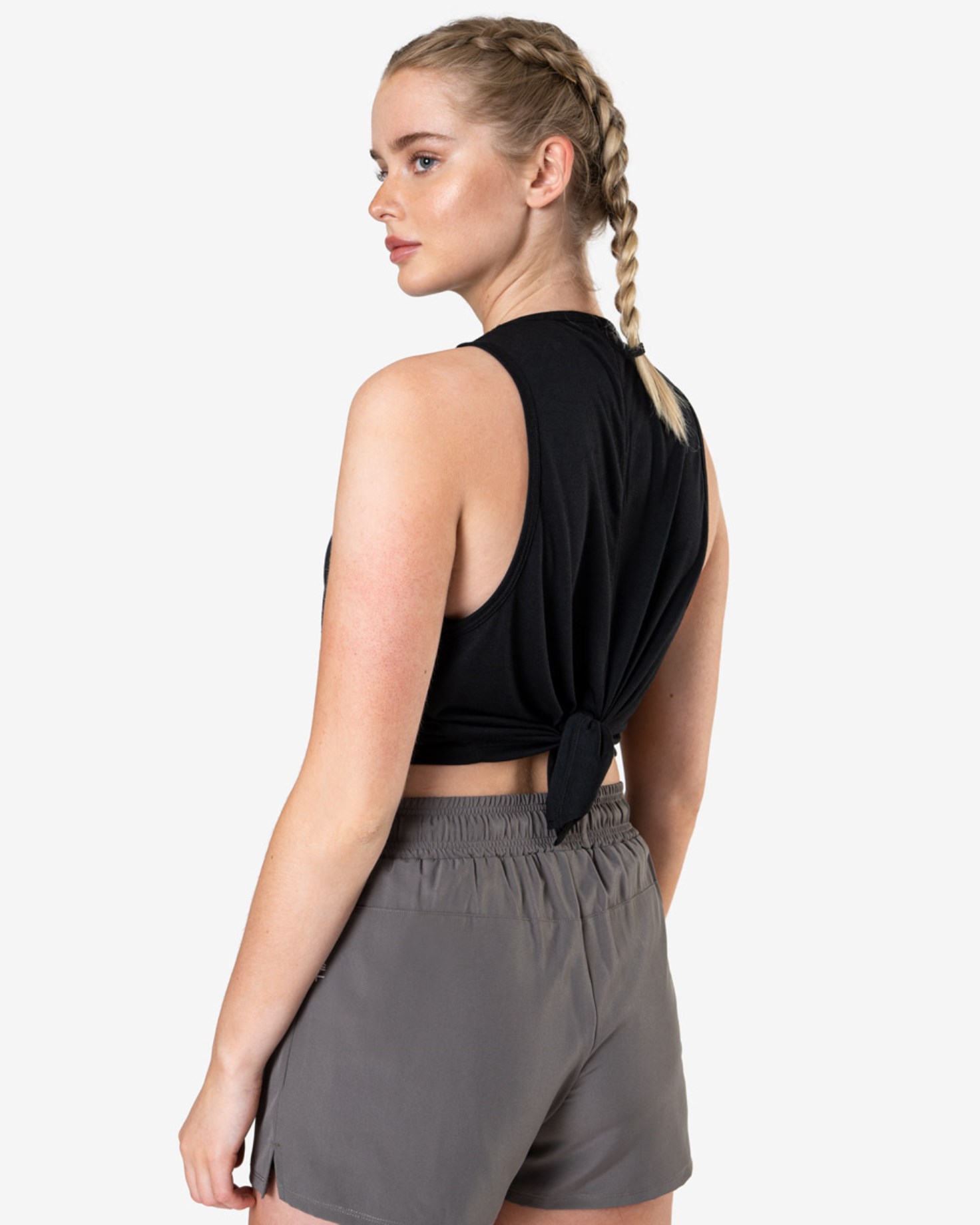 ICIW Devotion Tie Tank Top är en snygg tank top i högkvalitativt material. Tank toppen passar perfekt för ett pass på gymmet eller till vardags tack vare den enkla men snygga designen som också går att variera genom att knyta det längre tyget bak på ryggen. Det mjuka materialet låter huden andas och transporterar enkelt bort fukt.