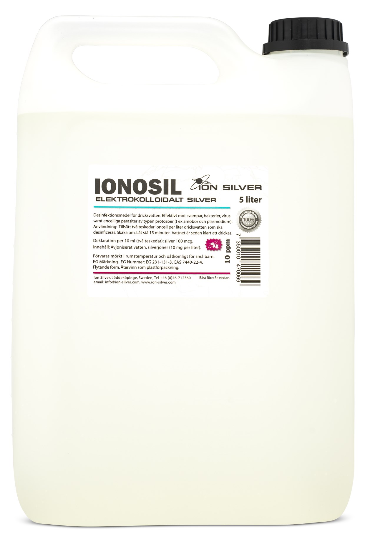 IONOSIL kolloidalt silver är en vattenreningsprodukt som består av avjoniserat vatten och silverjoner. IONOSIL är framställt med moderna elektrokolloidala produktionsmetoder. Hållbarheten ligger kring två år.