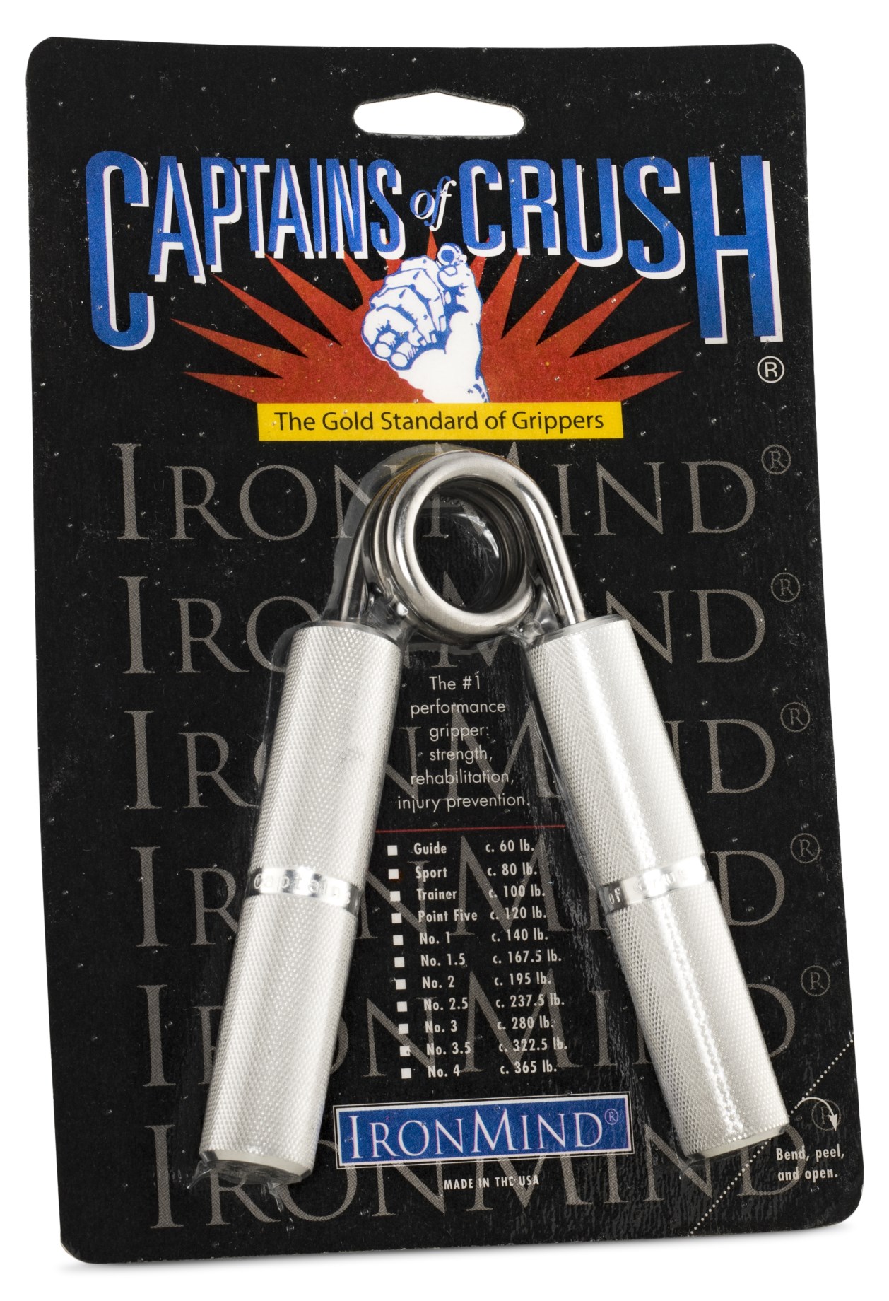 IronMind Captains of Crush är ett träningsredskap för att bygga upp ditt grepp men även för att testa det. Finns i flera greppstyrkor, från nybörjarnivå till de mest extrema motstånd som endast ett fåtal i världen har klarat av, bland annat styrkelegenden Magnus Samuelsson. Captains of Crush är internationellt erkänd som styrkemätare.
