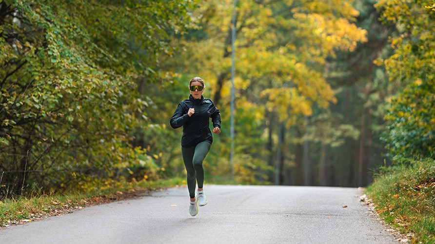 När vi blir trötta tenderar vi att luta oss fram, spänna axlarna och ta kortare steg. Sakta då ner och fånga upp dig själv. Låt kroppen tillsammans med andningen komma in i en jämn rytm som du behåller genom hela passet.