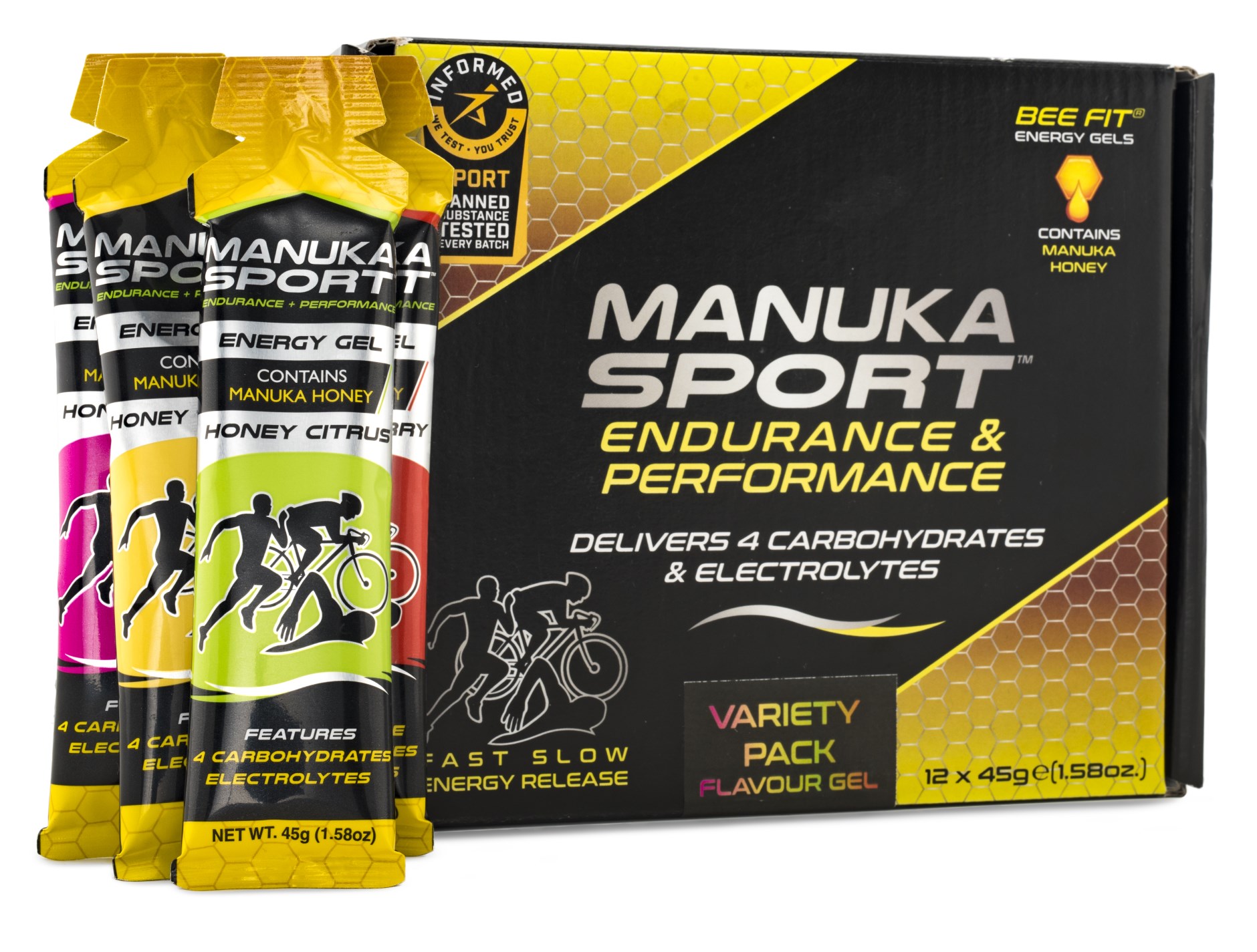 Manuka Sport Energy Gel Honung Blandpack är ett smidigt sätt att bibehålla vätskebalansen på en bra nivå och samtidigt tillföra energi som gör att du orkar långa träningspass, lopp och tävlingar. Dessa gels innehåller kolhydrater från fyra källor (manukahonung, maltodextrin, glukos och fruktos) tillsammans med fyra olika elektrolyter (natrium, kalium, kalcium och magnesium). Kolhydraterna ger snabb energi från glukos och maltodextrin och både snabb och långsam påfyllning från fruktos. Manukahonungen innehåller en mängd vitaminer, mineraler och aminosyror och är en uppskattad råvara som kommer från Nya Zeeland.