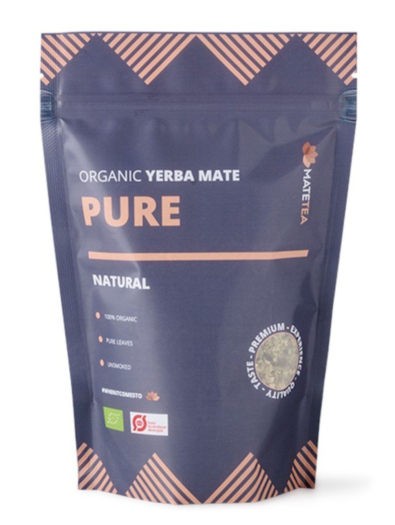 Matetea Yerba Mate Pure är ett både ekologisk och orökt mate från södra Brasilien. En premiumdryck som är helt fri från både stjälkar och pulver för bästa upplevelse. Matetea Yerba Mate Pure har en neutral och välbalanserad smak utan bitterhet. Drick en kopp när som helst under dygnet och låt den uppfriskande smaken ge både kropp och själ en energiboost.