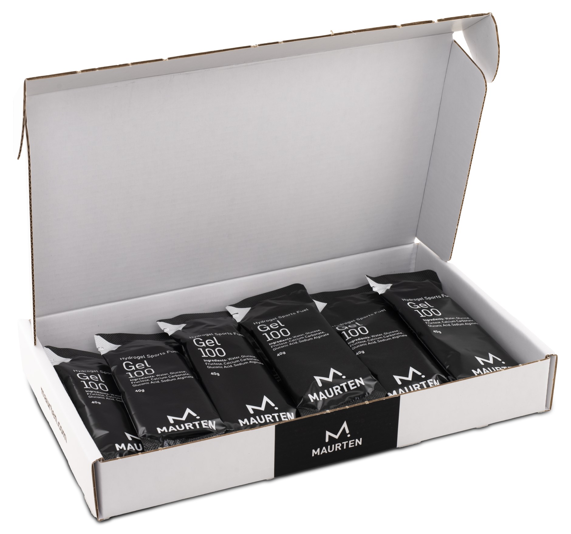 Med MAURTEN GEL 100 får du snabb och effektiv energi. En energigel i jellokonsistens i smarta portionsförpackningar. Perfekt att ha med sig under långvarig träning eller tävling. Gelen kan tas minuter innan, under och/eller direkt efter aktivitet. GEL 100 är en koncentrerad kolhydratslösning där man använt sig av fruktos och glukos i förhållande 0,8:1, vilket tillåter kroppen att tillgodogöra sig upp till 100 gram kolhydrater per timme. Genom att använda sig av en hydrogelteknologi underlättas transporten av kolhydraterna genom magen och vidare till tarmarna, där absorptionen av vatten, salt och kolhydrater sker enkelt. Fri från färgämnen och konserveringsmedel.